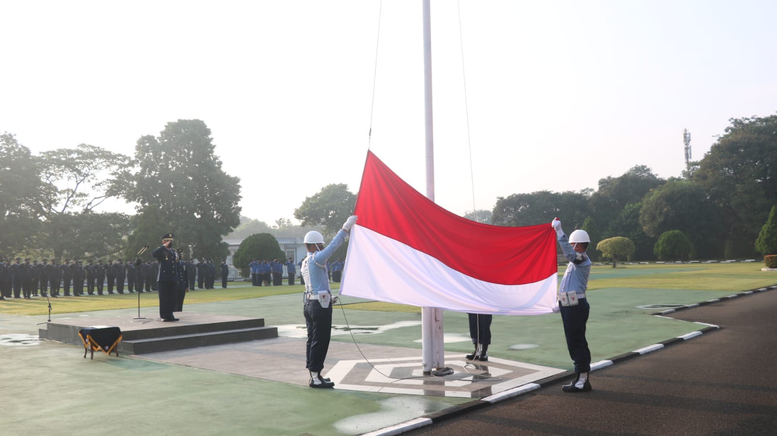 Bendera Merah Putih Dibentangkan dan Irup melakukan Hormat kepada bendera merah putih