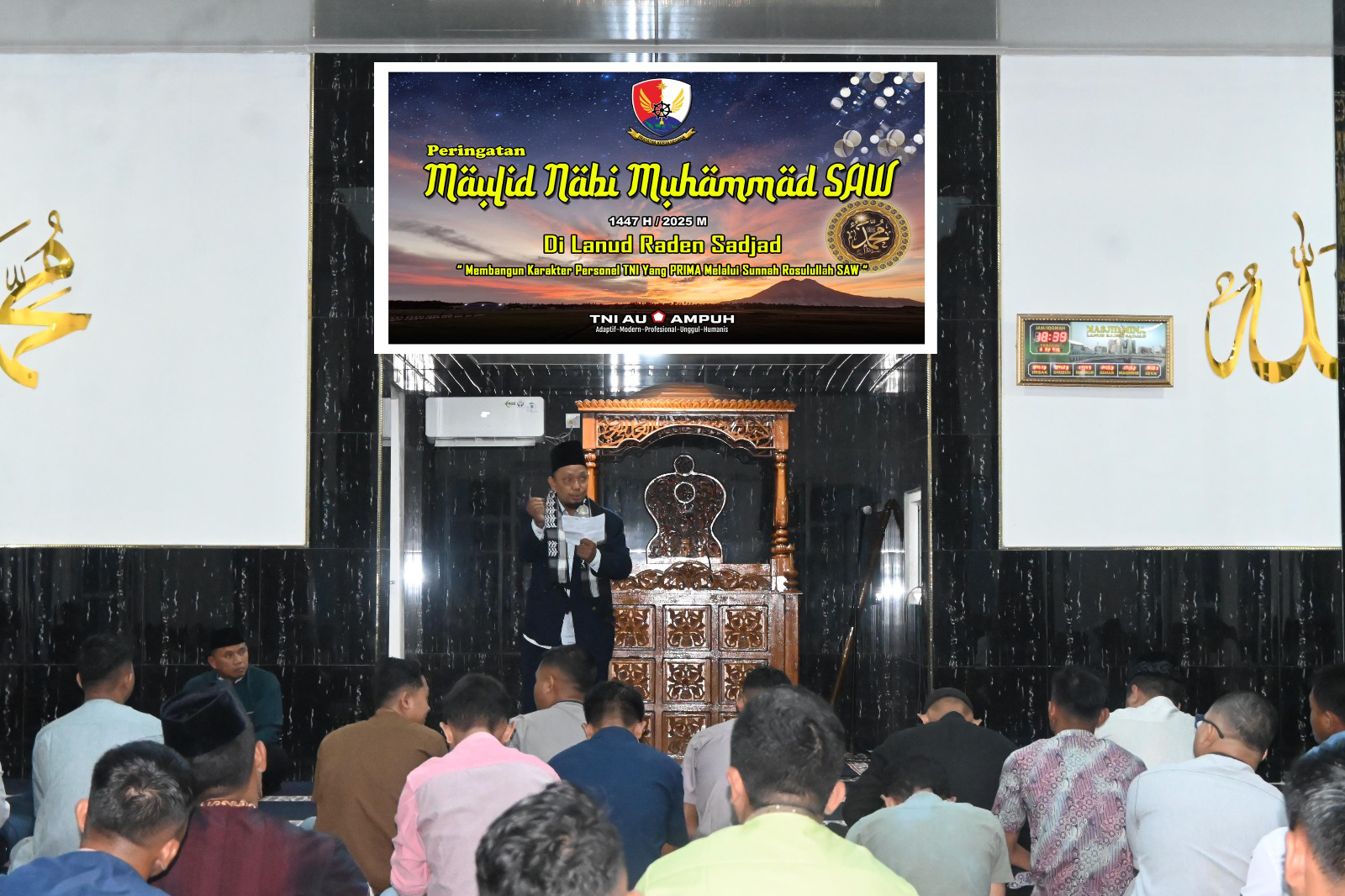 Lanud Raden Sadjad (RSA) Natuna menggelar peringatan Maulid Nabi Muhammad SAW tahun 1447 H/2025 M, Kamis (4/9/2025) Malam. Acara berlangsung di Masjid Mina Lanud RSA, Kabupaten Natuna, Provinsi Kepulauan Riau.