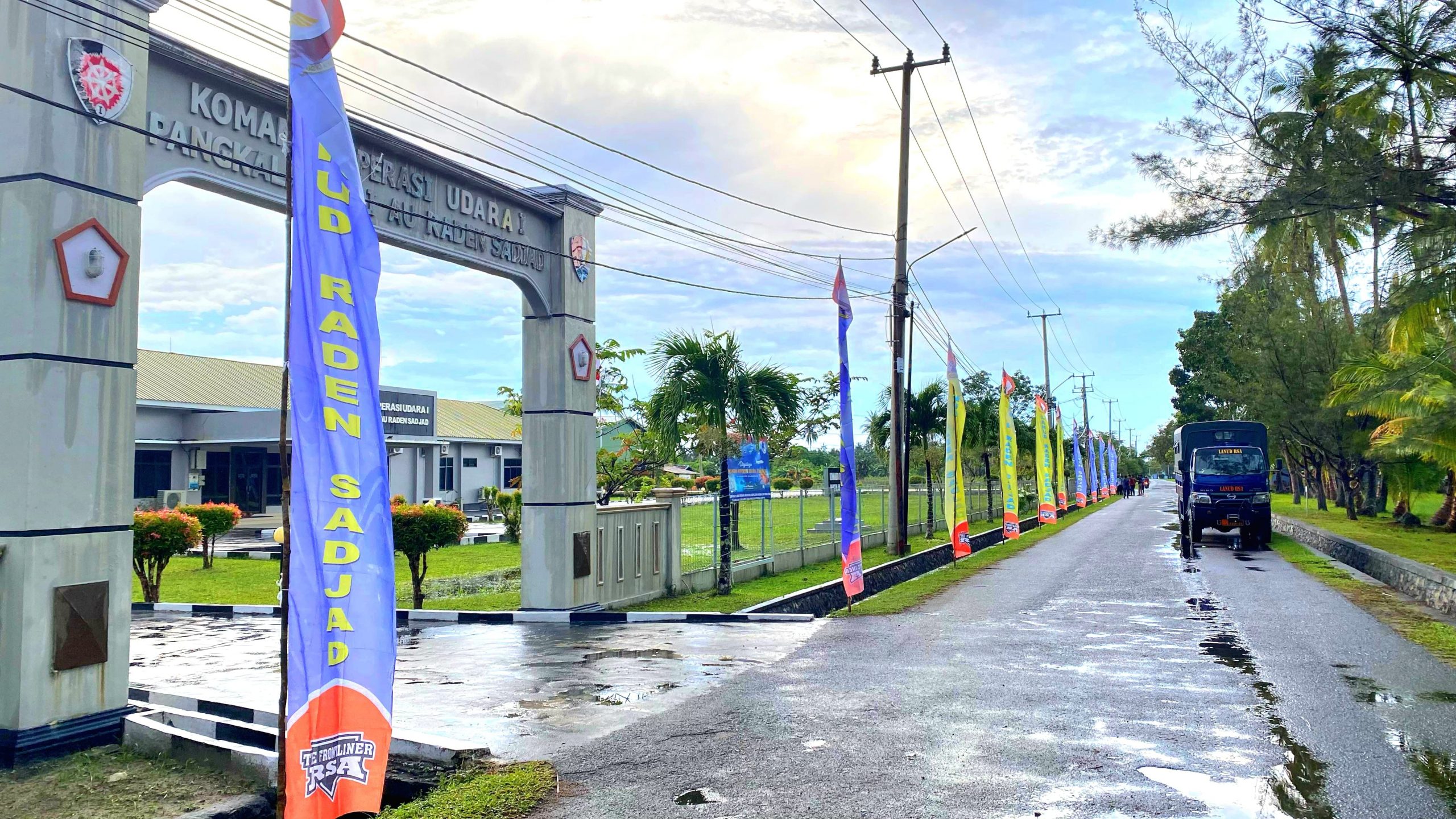Menyambut Hari Ulang Tahun (HUT) ke-79 Tentara Nasional Indonesia Angkatan Udara (TNI AU) yang jatuh pada tanggal 9 April mendatang, Pangkalan TNI AU (Lanud) Raden Sadjad (RSA) di Kabupaten Natuna, Provinsi Kepulauan Riau, melaksanakan kegiatan pemasangan umbul-umbul, Sabtu (5/4/2025).