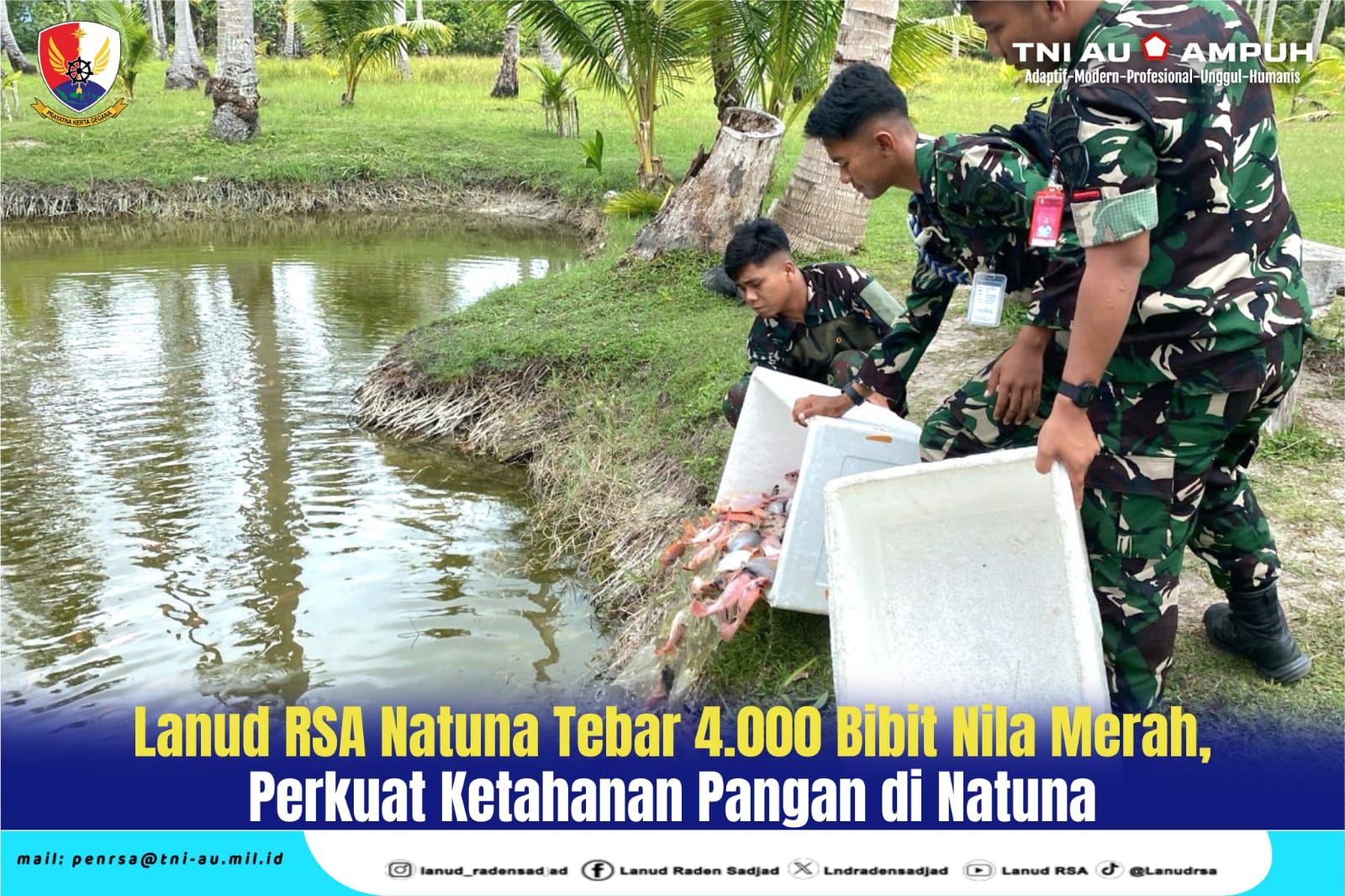 Lanud RSA Natuna Tebar 4.000 Bibit Nila Merah, Perkuat Ketahanan Pangan di Natuna