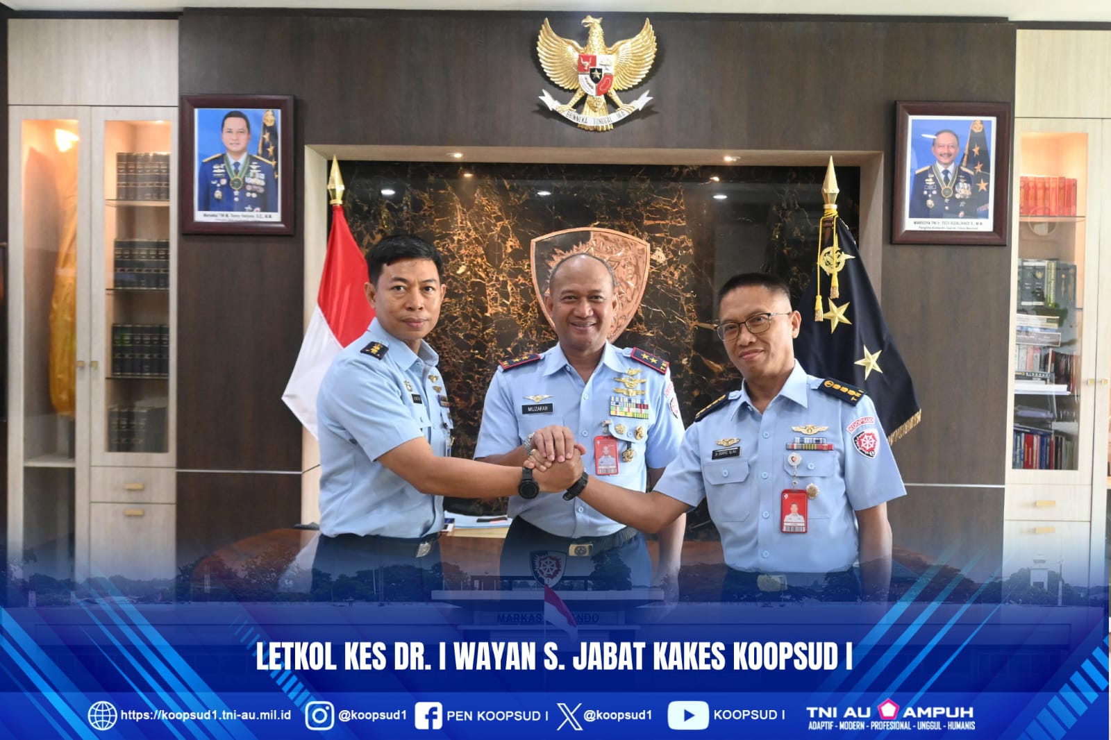 Serah terima jabatan Kakes Koopsud I dari Kolonel Kes dr. Crispinus Adhi S., Sp.An., F.I.P., yang selanjutnya menjabat sebagai Pokli Gol. IV Bid. Yanmedik RSAU dr. Esnawan Antariksa Diskesau, digantikan oleh Letkol Kes dr. I Wayan S., Sp.OG., M.I.Pol., yang sebelumnya menjabat sebagai Kabag Beban Gravitasi Departemen Aerofisiologi Lakespra dr. Saryanto.