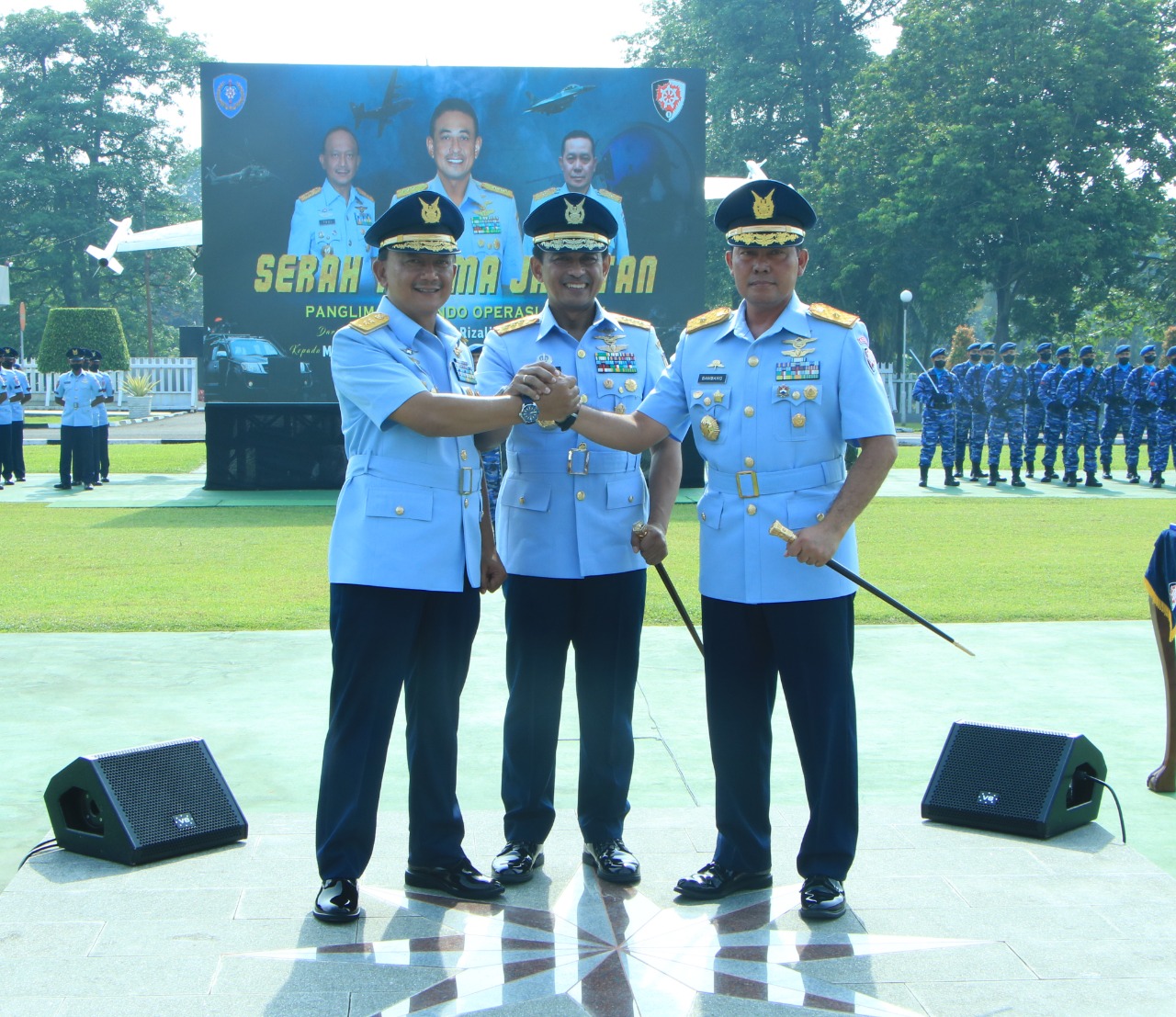 Jakarta, Koopsud I. Panglima Komando Operasi Udara Nasional (Pangkoopsudnas) Marsdya TNI Andyawan Martono P., S.I.P., M.Tr(Han), pimpin pelaksanaan Upacara Serah Terima Jabatan (Sertijab) Panglima Komando Operasi Udara I (Pangkoopsud I) dari Marsda TNI Ir. Tedi Rizalihadi S., M.M., kepada Marsma TNI Bambang Gunarto, S.T., M.M., M.Sc. Bertempat di Lapangan Upacara Makoopsud I.