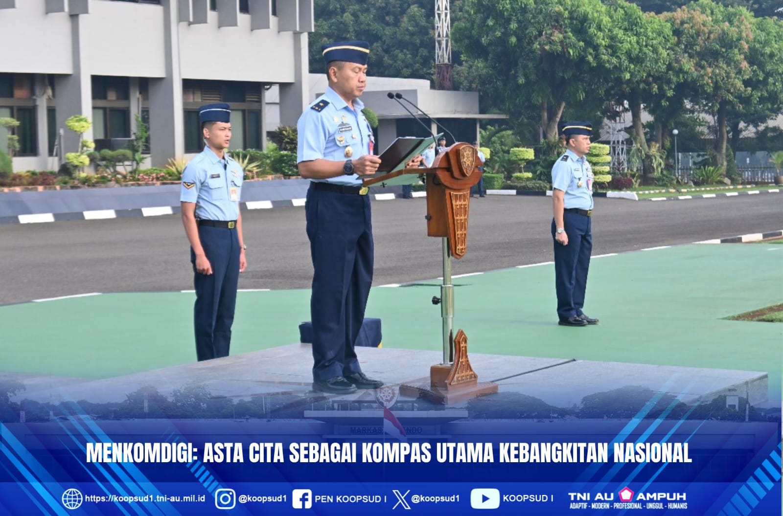 Demikian dalam sambutan Menteri Komunikasi dan Digital Republik Indonesia, Meutya Viada Hafid dalam sambutannya yang dibacakan oleh Kaskoopsud I Marsma TNI Prasetiya Halim, S.H., selaku Irup Upacara Peringatan Harkitnas ke-117, yang mewakili Pangkoopsud I Marsma TNI Muzafar, S.Sos., M.M. Bertempat di Lapangan Upacara Makoopsud I Halim Perdanakusuma Jakarga, Selasa (20/5/25).