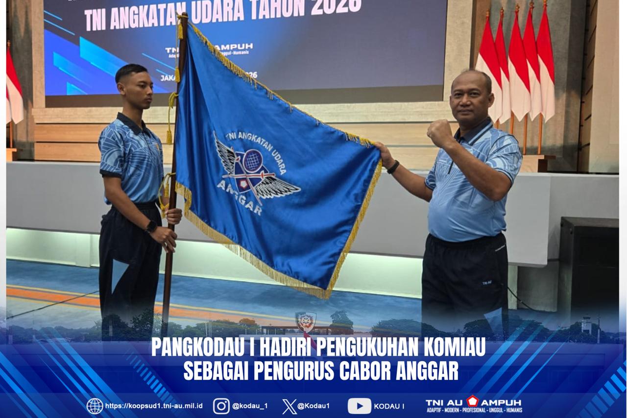 Jakarta – Pen Kodau I. Panglima Komando Daerah Udara I Marsda TNI Muzafar, S.Sos., M.M., menghadiri kegiatan pengukuhan pengurus KOMIAU Tahun 2026 yang dipimpin langsung oleh Kepala Staf Angkatan Udara Marsekal TNI M. Tonny Harjono, S.E, M.M., bertempat di Gedung Auditorium Mabesau Cilangkap. Jum’at (20/2).