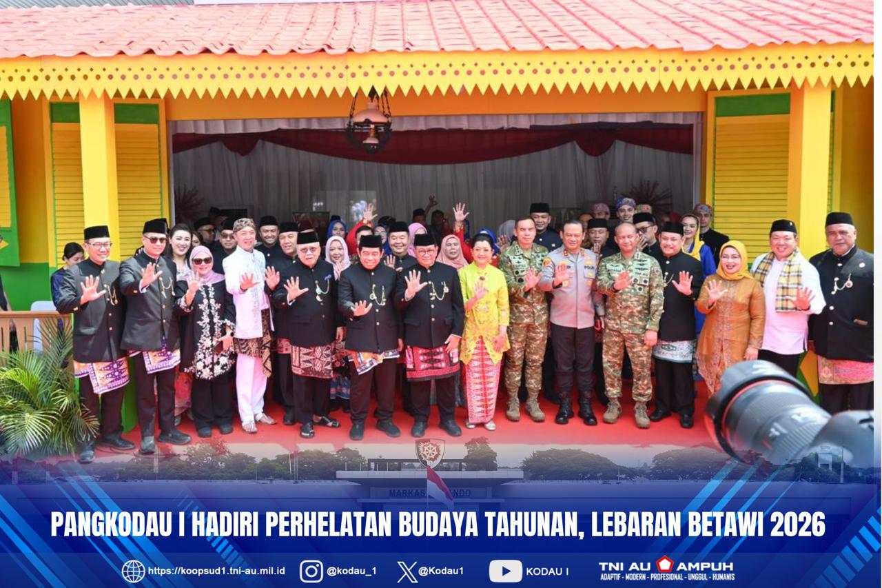 Jakarta-Penkodau I. Panglima Kodau I Marsda TNI Muzafar, S.Sos., M.M., turut menghadiri kegiatan Perhelatan Budaya Tahunan, lebaran Betawi Tahun 2026, tempat di Lapangan Banteng, Sawah Besar Jakarta Pusat, Sabtu (11/4/26).