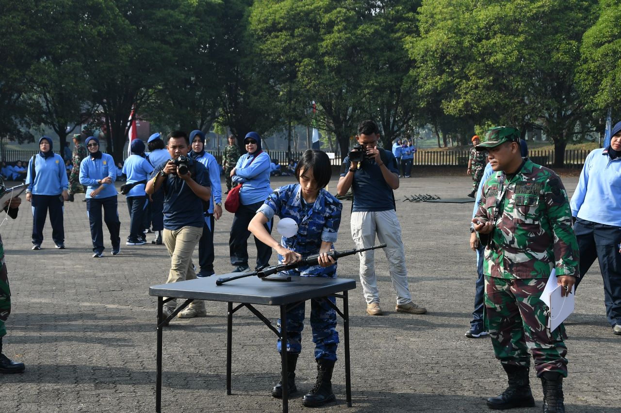 Jakarta, Penkoopsud I. Panglima Komando Operasi Udara I Marsekal Muda TNI Bambang Gunarto, S.T., M.M., M.Sc., beserta Ibu Mala Bambang Gunarto mengapresiasi atas keberhasilan Wanita Angkatan Udara (Wara) supervisi Koopsud I menjadi juara 1 pada perlombaan bongkar pasang senjata dalam rangka menyambut HUT Wanita Angkatan Udara yang dilaksanakan di Mabesau, Cilangkap. Kamis, 10 Agustus 2023.