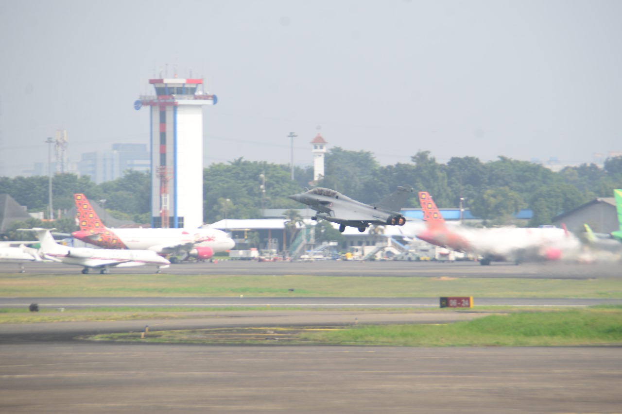 Jakarta, Penkoopsud I. Panglima Komando Operasi Udara I Marsda TNI Mohammad Nurdin turut mendampingi Panglima Koops Udara Nasional Marsdya TNI Ir. Tedi Rizalihadi S., M.M. backseat pesawat tempur Rafale milik Angkatan Udara Prancis (French Air and Space Force/FASF) di Terminal selatan, Lanud Halim Perdanakusuma, Jakarta. (Kamis, 25 Juli 2024)