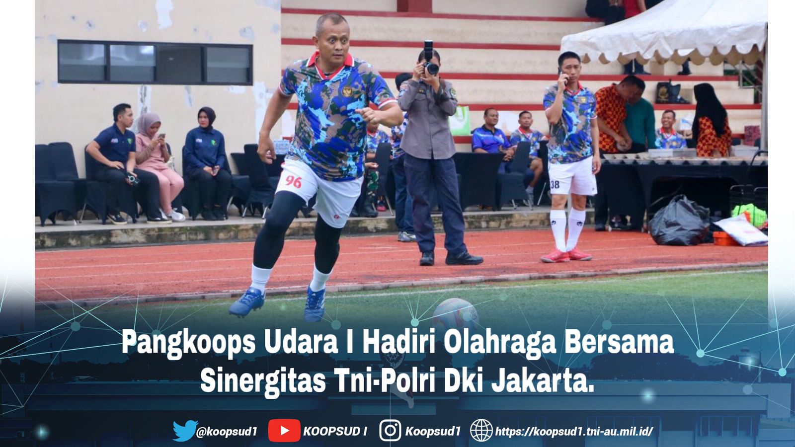 Jakarta, Penkoopsud I. Panglima Komando Operasi Udara I Marsda TNI Mohammad Nurdin hadiri kegiatan olahraga bersama untuk mengeratkan tali silaturahmi dalam sinergitas TNI-Polri jajaran Forkopimda DKI Jakarta di bulan Ramadhan 1445 H.