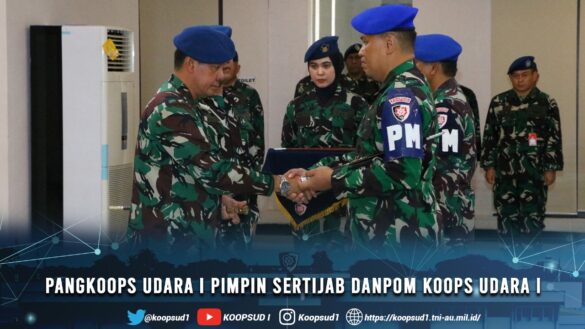 Berlangsung sederhana namun khidmat, acara serah terima jabatan Komandan Pom Koops Udara I dari Kolonel Pom Hary M. Ambon, S.H., M.Si., kepada Kolonel Pom R. M. Roni Widayanto, S.H., ditandai dengan penanggalan dan penyematan tanda jabatan, penandatanganan Naskah Berita Acara, dan laporan resmi pejabat terkait kepada Panglima Koops Udara I selaku pimpinan acara.
