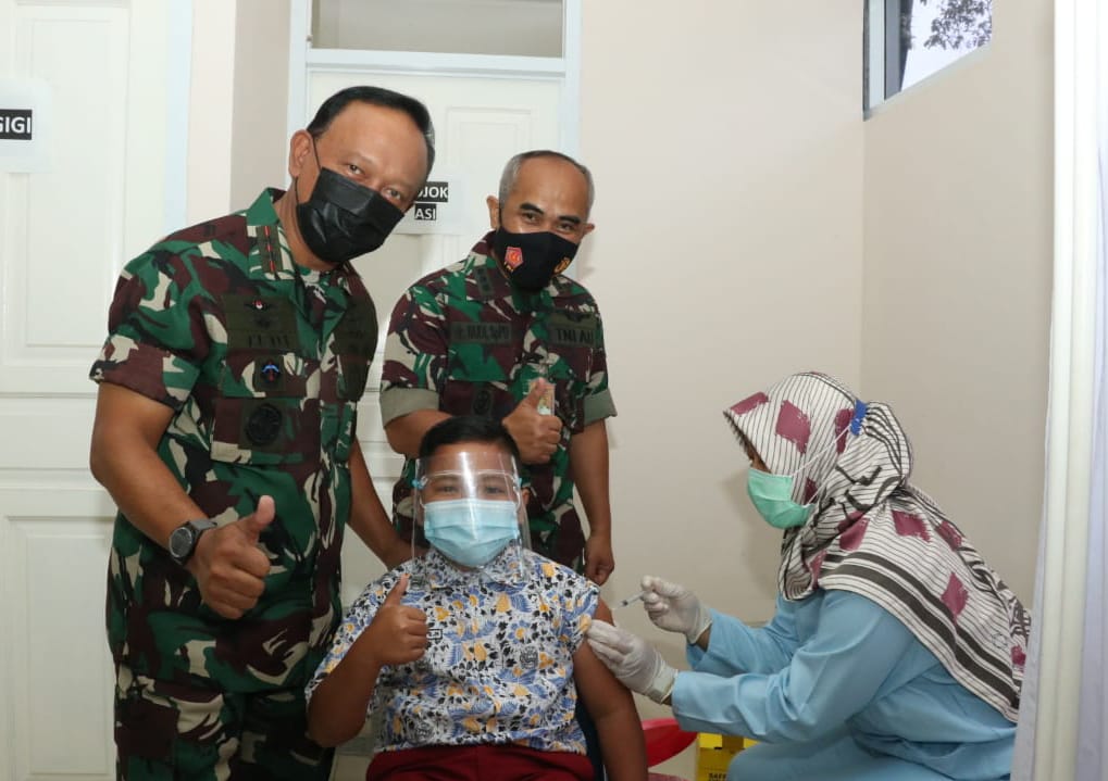 “Bagaimana kabarnya nak, semangat dan tetap jaga kesehatannya ya” ujar Pangkoopsau I saat berkomunikasi sekaligus untuk bertegur sapa dan memberikan semangat kepada anak-anak yang akan menerima vaksin kedua.