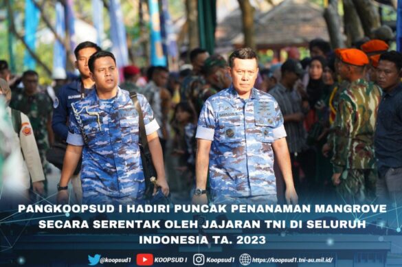 Jakarta, Penkoopsud I. Pangkoopsud I Marsda TNI Bambang Gunarto, S.T., M.M., M.Sc., hadiri puncak penanaman mangrove nasional secara serentak oleh jajaran TNI di seluruh Indonesia tahun 2023, yang dipimpin oleh Presiden RI Ir. H. Joko Widodo didampingi beberapa Menteri Kabinet Indonesia Bersatu, Panglima TNI Laksamana TNI Yudo Margono, S.E., M.M, Kapolri, Kasad, Kasal, Kasau, serta beberapa Dubes negara sahabat, para Pejabat Utama TNI, Pj. Gubernur DKI Jakarta, Wakil Ketua Yayasan Budha Tzu Chi, para anggota pramuka, pelajar dan masyarakat, yang dipusatkan di Taman Wisata Alam (TWA) Angke Kapuk-Jakarta Utara. (Senin, 15-05-2023).