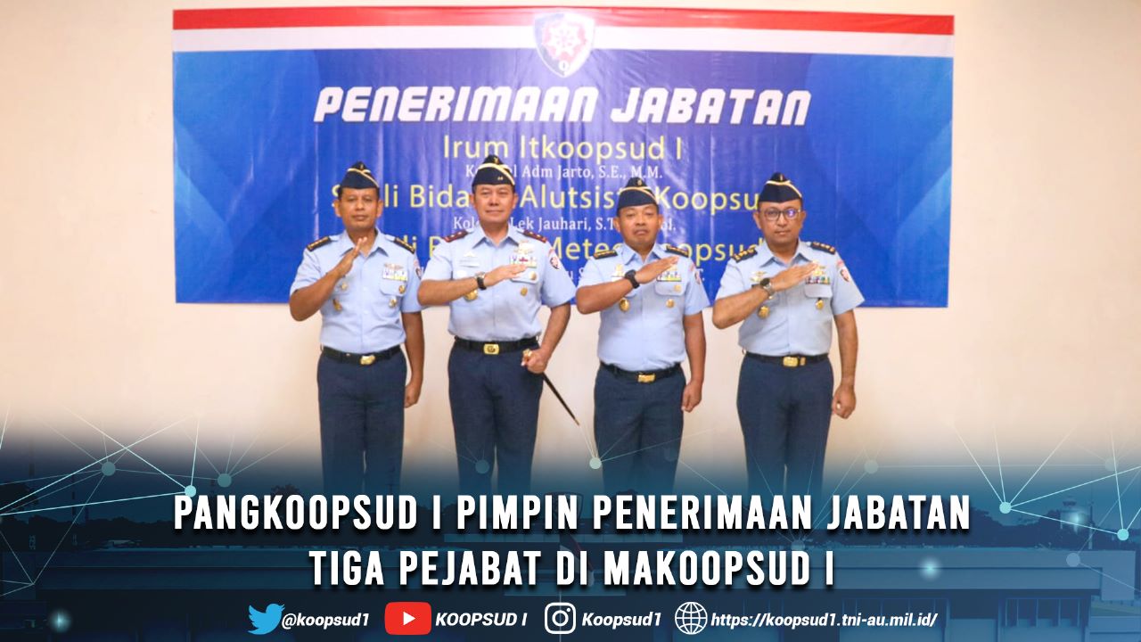 Penerimaan jabatan yang dipimpin oleh Pangkoopsud I yaitu Inspektur Umum Inspektorat Koopsud I (Irum It Koopsud I) kepada Kolonel Adm Jarto, S.E., M.M., yang sebelumnya menjabat sebagai Pamen Disminpersau, kemudian Sahli Bidang Alutsista Koopsud I Kolonel Lek Jauhari, S.T., M.I.Pol., yang sebelumnya menjabat Dandepohar 40 dan jabatan Sahli Bidang Meteo Koopsud I kepada Letkol Lek Cahya Heru Setiawan, S.T., M.T., yang sebelumnya menjabat Kasiadaalkomalbanav Subdisadalek Disadaau.