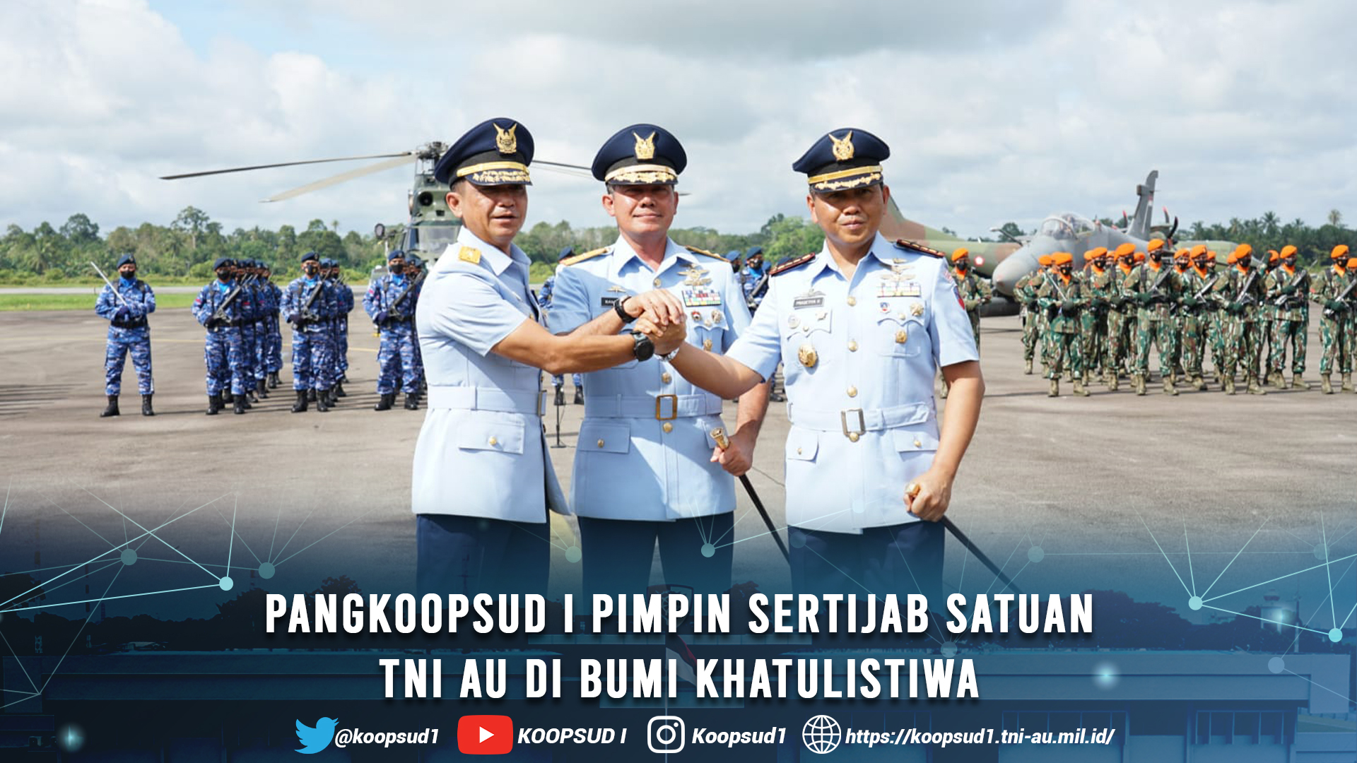 Pontianak, Penkoopsud I. Pangkoopsud I Marsda TNI Bambang Gunarto, S.T., M.M., M.Sc., pimpin upacara serah terima jabatan satuan TNI AU di Bumi Khatulistiwa. Dalam hal ini serah terima jabatan Komandan Lanud Supadio dari Marsma TNI Deni Hasoloan Simanjuntak yang selanjutnya menjabat Kas Koopsud I kepada Kolonel Pnb Prasetiya Halim, S.H., yang sebelumnya menjabat Waasops Sops Kas Koopsudnas.