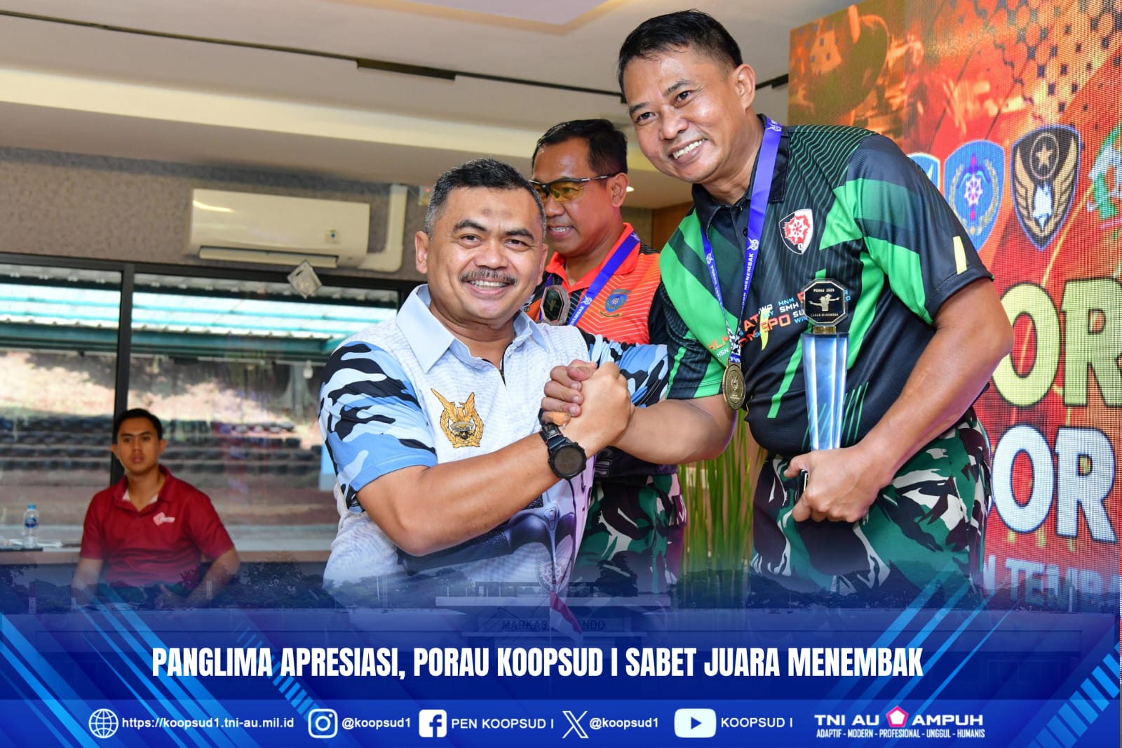 Panglima Koops Udara I Marsda TNI Muzafar, S.Sos., M.M., menyampaikan, apresiasi kepada atlet menembak yang telah meraih juara II team dalam Pekan Olah Raga Angkatan Udara (PORAU) tahun 2025, ini pencapaian luar biasa, kita bangga personel Koopsud I memiliki keahlian dalam menambak.