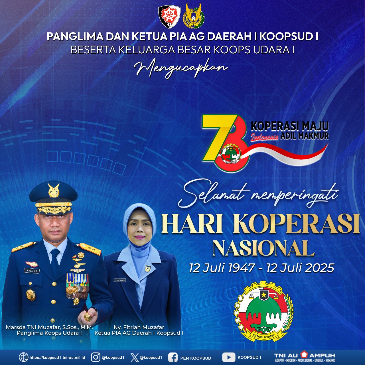 Berita Panglima Komando Operasi Udara I dan Ketua PIA AG Daerah I beserta Keluarga Besar Koopsud I mengucapkan by koopsud berita July 12, 2025 July 12, 2025 0 comment Selamat memperingati HARI KOPERASI NASIONAL 12 Juli1947 – 12 JULI 2025 #Koopsud1 #Abhibhutiantarikshe Share 0 Rekomendasi untuk Anda Danlanud Suryadarma – Subang & Danlanud Maimun Saleh – Sabang... February 11, 2022 Pangkoopsud I Tinjau Pelaksanaan Serbuan Vaksinasi di Tangerang, Banten. February 26, 2022 Koopsud I Laksanakan Peringatan Isra Mi’raj 1443 H. March 16, 2022 Pangkoopsud I Silaturahmi ke Kosek IKN March 17, 2022 Koopsud I Gelar Latihan Survival Tempur “Madhi Yudha” di Subang,... March 21, 2022 Latihan Survival Tempur “Madhi Yudha” 2022 Resmi di Tutup March 23, 2022 Pangkoopsud I Meninjau Kesiapan Lanud RSA dan Satrad 212 sebagai... March 25, 2022 Koopsud I Laksanakan Penyusunan/Input Data RKA-KL TA. 2023 March 31, 2022 Pangkoopsud I: Kenaikan Pangkat Wujud Penghargaan Pimpinan Pada Para Personel... April 1, 2022 Pangkoopsud I: Bakti Sosial Wujud Sinergitas Pemda, Masyarakat dan TNI... April 5, 2022