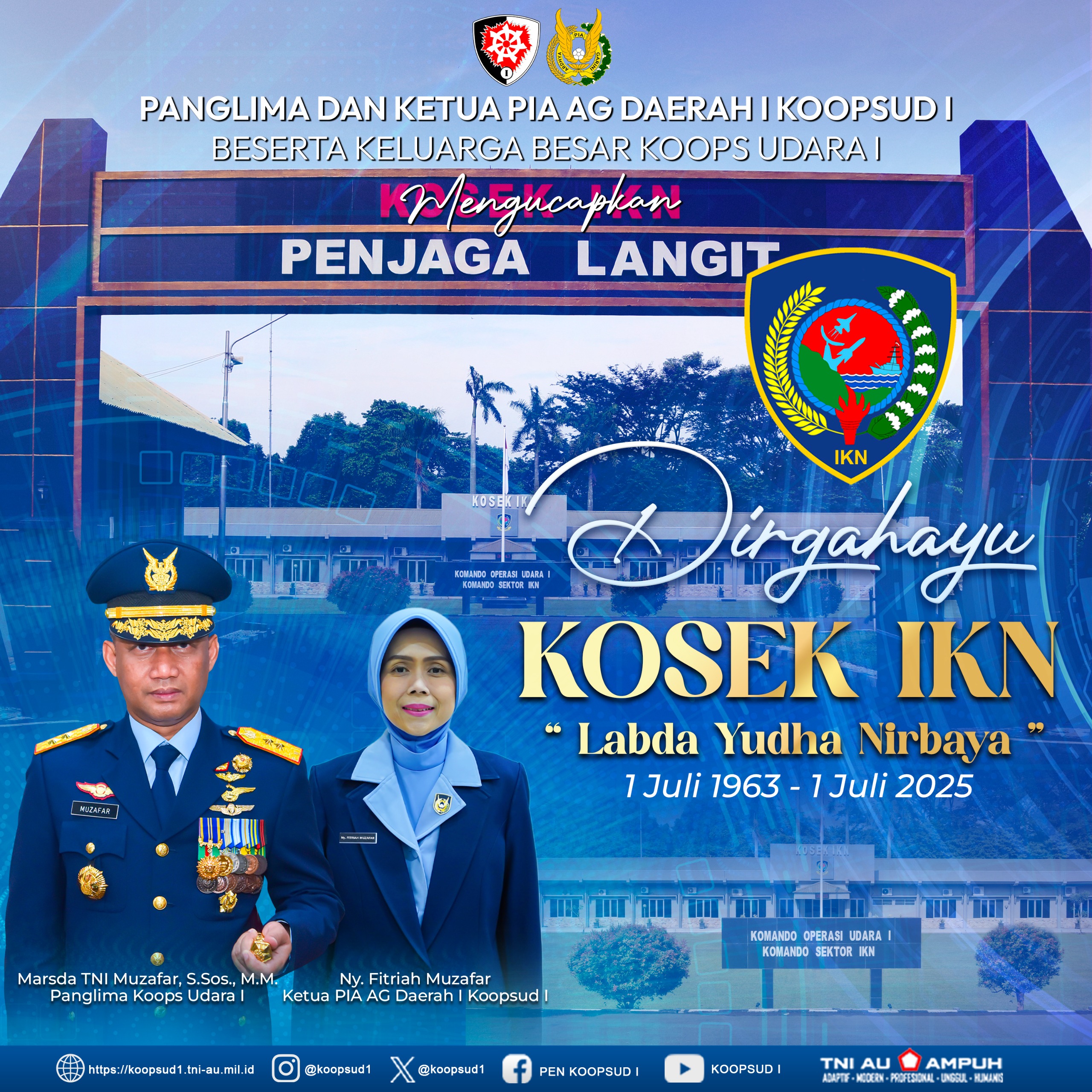 Berita Panglima Komando Operasi Udara I & Ketua PIA Ardhya Garini D.I Koopsud I beserta Keluarga Besar Koops Udara I mengucapkan by koopsud berita July 1, 2025 July 1, 2025 0 comment Dirgahayu Kosek IKN Komando Sektor Ibu Kota Negara “Labda Yudha Nirbaya” 1 Juli 2025 #Abhibutiantarikshe #Koopsud1 Share 0 Rekomendasi untuk Anda Danlanud Suryadarma – Subang & Danlanud Maimun Saleh – Sabang... February 11, 2022 Pangkoopsud I Tinjau Pelaksanaan Serbuan Vaksinasi di Tangerang, Banten. February 26, 2022 Koopsud I Laksanakan Peringatan Isra Mi’raj 1443 H. March 16, 2022 Pangkoopsud I Silaturahmi ke Kosek IKN March 17, 2022 Koopsud I Gelar Latihan Survival Tempur “Madhi Yudha” di Subang,... March 21, 2022 Latihan Survival Tempur “Madhi Yudha” 2022 Resmi di Tutup March 23, 2022 Pangkoopsud I Meninjau Kesiapan Lanud RSA dan Satrad 212 sebagai... March 25, 2022 Koopsud I Laksanakan Penyusunan/Input Data RKA-KL TA. 2023 March 31, 2022 Pangkoopsud I: Kenaikan Pangkat Wujud Penghargaan Pimpinan Pada Para Personel... April 1, 2022 Pangkoopsud I: Bakti Sosial Wujud Sinergitas Pemda, Masyarakat dan TNI... April 5, 2022