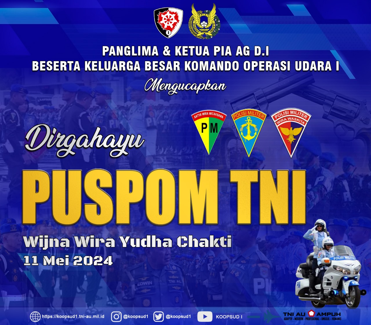 Berita Panglima Komando Operasi Udara I & Ketua PIA Ardhya Garini Daerah I Koopsud I beserta Keluarga Besar Komando Operasi Udara I Mengucapkan by penkoopsud1 May 11, 2024 May 11, 2024 0 comment Selamat Memperingati HUT POM TNI “Wijna Wira Yudha Chakti” 11 Mei 2024 #Abhibhutiantarikshe #Koopsud1 Share 0 Rekomendasi untuk Anda Danlanud Suryadarma – Subang & Danlanud Maimun Saleh – Sabang... February 11, 2022 Pangkoopsud I Tinjau Pelaksanaan Serbuan Vaksinasi di Tangerang, Banten. February 26, 2022 Koopsud I Laksanakan Peringatan Isra Mi’raj 1443 H. March 16, 2022 Pangkoopsud I Silaturahmi ke Kosek IKN March 17, 2022 Koopsud I Gelar Latihan Survival Tempur “Madhi Yudha” di Subang,... March 21, 2022 Latihan Survival Tempur “Madhi Yudha” 2022 Resmi di Tutup March 23, 2022 Pangkoopsud I Meninjau Kesiapan Lanud RSA dan Satrad 212 sebagai... March 25, 2022 Koopsud I Laksanakan Penyusunan/Input Data RKA-KL TA. 2023 March 31, 2022 Pangkoopsud I: Kenaikan Pangkat Wujud Penghargaan Pimpinan Pada Para Personel... April 1, 2022 Pangkoopsud I: Bakti Sosial Wujud Sinergitas Pemda, Masyarakat dan TNI... April 5, 2022
