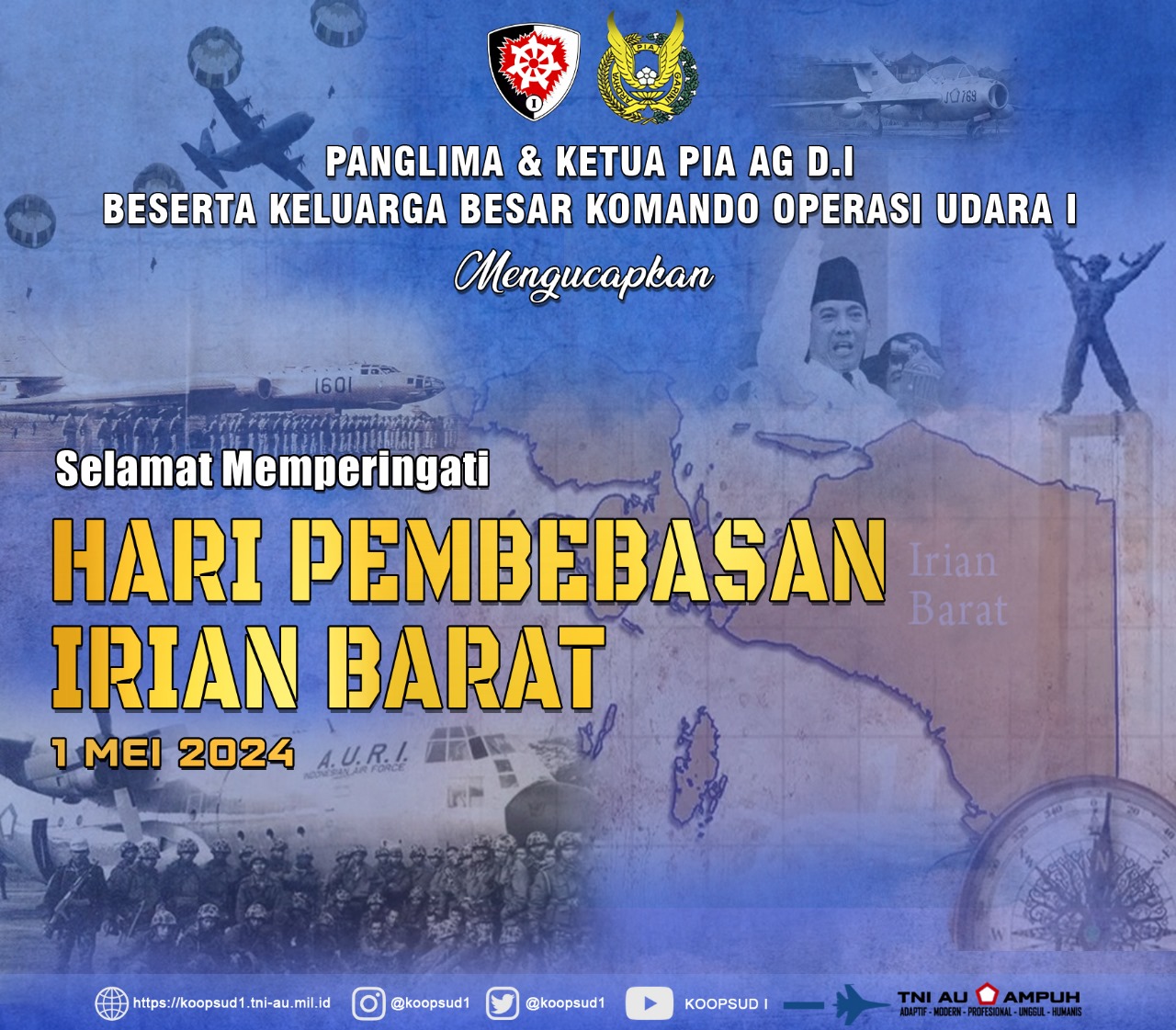 Berita Panglima Komando Operasi Udara I & Ketua PIA Ardhya Garini Daerah I Koopsud I beserta Keluarga Besar Komando Operasi Udara I Mengucapkan by penkoopsud1 May 1, 2024 May 1, 2024 0 comment Selamat Memperingati HARI PEMBEBASAN IRIAN BARAT 1 MEI 2024 #Abhibhutiantarikshe #Koopsud1 Share 0 Rekomendasi untuk Anda Danlanud Suryadarma – Subang & Danlanud Maimun Saleh – Sabang... February 11, 2022 Pangkoopsud I Tinjau Pelaksanaan Serbuan Vaksinasi di Tangerang, Banten. February 26, 2022 Koopsud I Laksanakan Peringatan Isra Mi’raj 1443 H. March 16, 2022 Pangkoopsud I Silaturahmi ke Kosek IKN March 17, 2022 Koopsud I Gelar Latihan Survival Tempur “Madhi Yudha” di Subang,... March 21, 2022 Latihan Survival Tempur “Madhi Yudha” 2022 Resmi di Tutup March 23, 2022 Pangkoopsud I Meninjau Kesiapan Lanud RSA dan Satrad 212 sebagai... March 25, 2022 Koopsud I Laksanakan Penyusunan/Input Data RKA-KL TA. 2023 March 31, 2022 Pangkoopsud I: Kenaikan Pangkat Wujud Penghargaan Pimpinan Pada Para Personel... April 1, 2022 Pangkoopsud I: Bakti Sosial Wujud Sinergitas Pemda, Masyarakat dan TNI... April 5, 2022