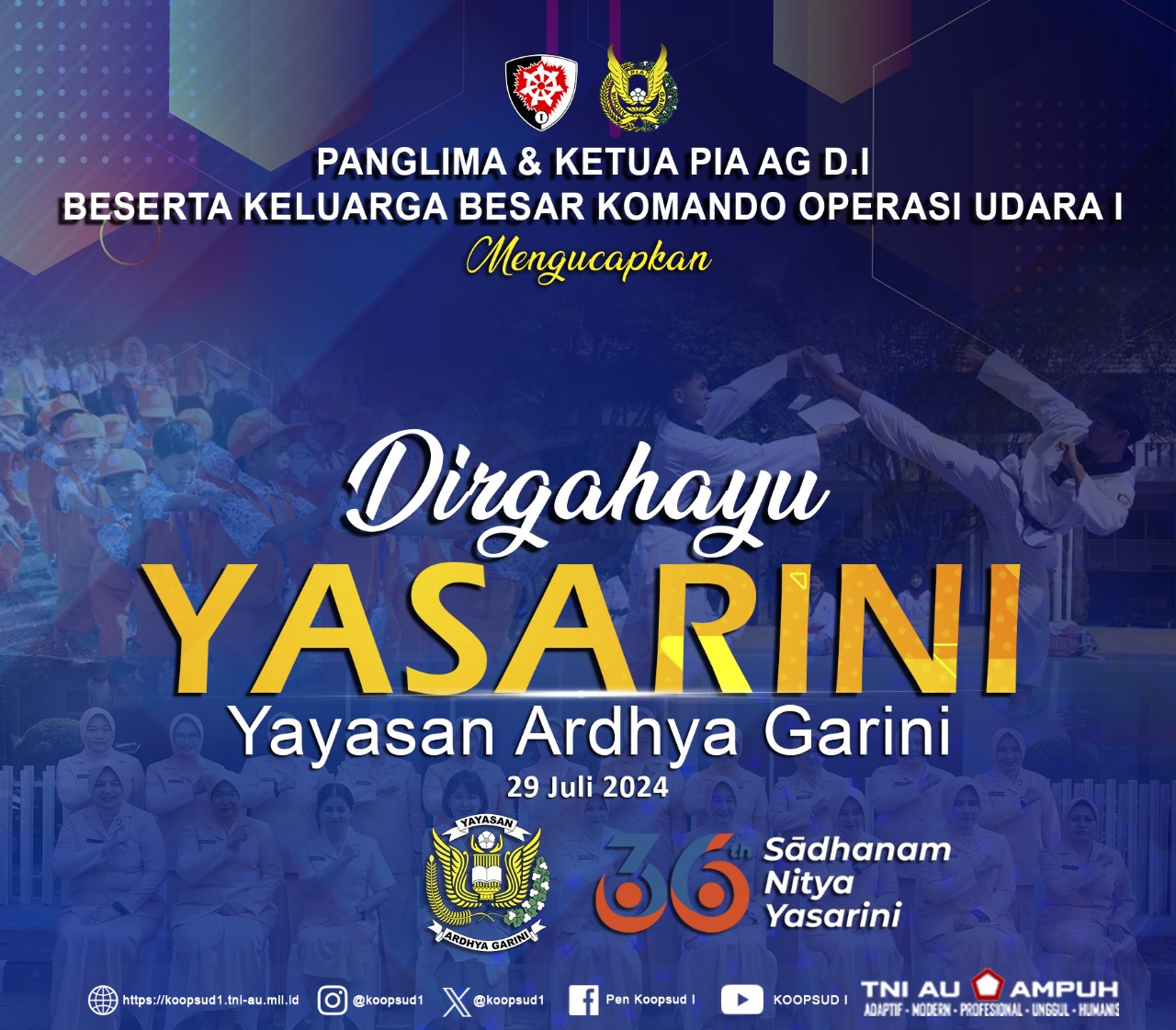 Berita Panglima Komando Operasi Udara I & Ketua PIA Ardhya Garini Daerah I Koopsud I beserta Keluarga Besar Komando Operasi Udara I Mengucapkan by koopsud berita July 28, 2024 July 28, 2024 0 comment Dirgahayu YASARINI Yayasan Ardhya Garini 29 Juli 2024 #abhibhutiantarikshe #Koopsud1 Share 0 Rekomendasi untuk Anda Danlanud Suryadarma – Subang & Danlanud Maimun Saleh – Sabang... February 11, 2022 Pangkoopsud I Tinjau Pelaksanaan Serbuan Vaksinasi di Tangerang, Banten. February 26, 2022 Koopsud I Laksanakan Peringatan Isra Mi’raj 1443 H. March 16, 2022 Pangkoopsud I Silaturahmi ke Kosek IKN March 17, 2022 Koopsud I Gelar Latihan Survival Tempur “Madhi Yudha” di Subang,... March 21, 2022 Latihan Survival Tempur “Madhi Yudha” 2022 Resmi di Tutup March 23, 2022 Pangkoopsud I Meninjau Kesiapan Lanud RSA dan Satrad 212 sebagai... March 25, 2022 Koopsud I Laksanakan Penyusunan/Input Data RKA-KL TA. 2023 March 31, 2022 Pangkoopsud I: Kenaikan Pangkat Wujud Penghargaan Pimpinan Pada Para Personel... April 1, 2022 Pangkoopsud I: Bakti Sosial Wujud Sinergitas Pemda, Masyarakat dan TNI... April 5, 2022