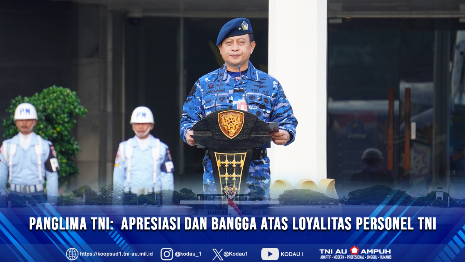 Jakarta-Penkodau I. Apresiasi dan rasa bangga atas semangat, dedikasi dan loyalitas yang telah ditunjukkan seluruh personel TNI dalam setiap pelaksanaan tugas, ditengah perkembangan lingkungan strategis global, regional maupun nasional yang dinamis dan kompleks.