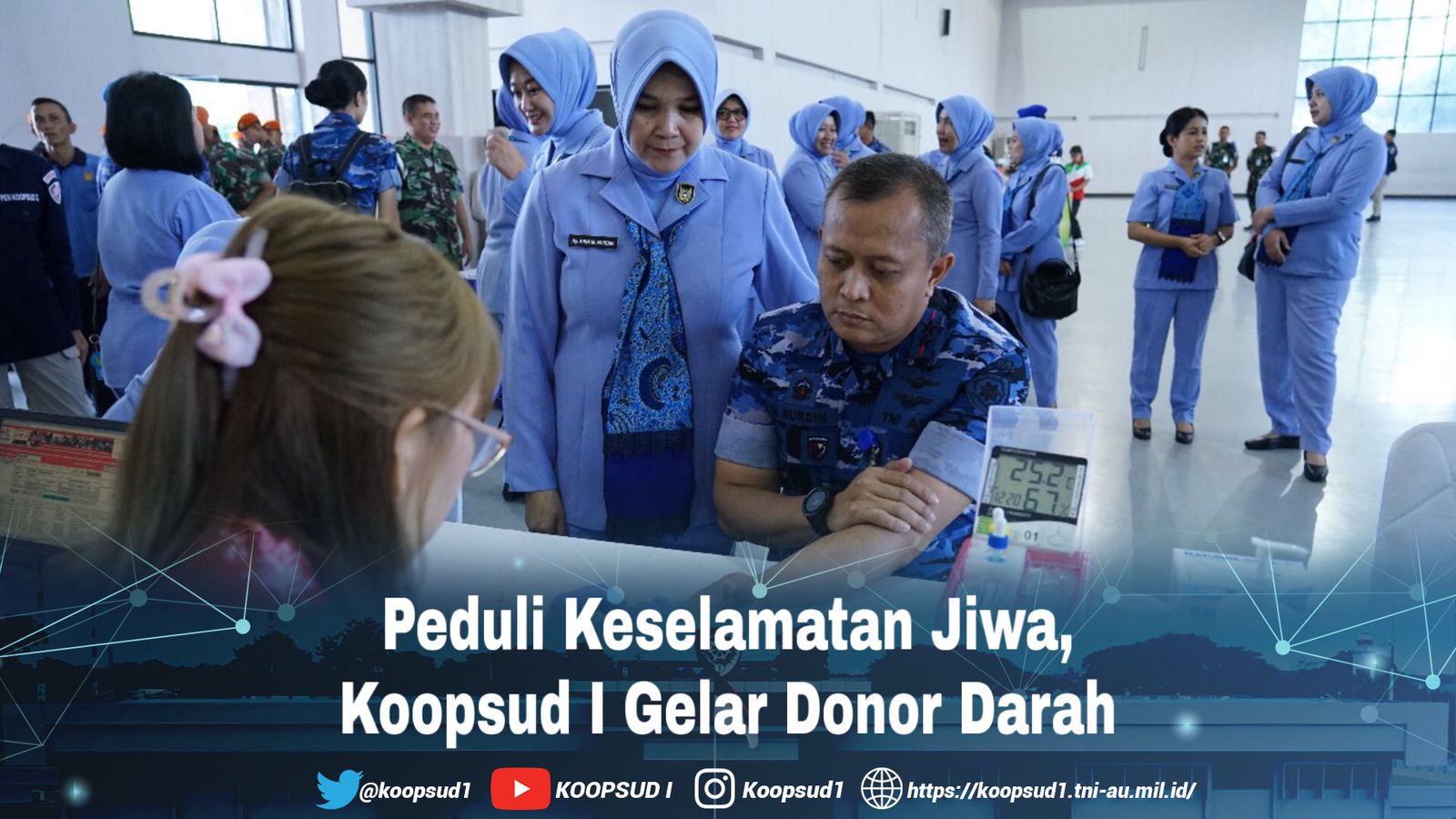 TNI AU, Penkoopsud I. Peduli keselamatan jiwa sesama, Koops Udara I menggelar Donor darah sebagai rangkaian peringatan HUT ke-78 TNI Angkatan Udara bertempat di GOR Antarikshe Makoopsud I, Jumat (26/4/2024).