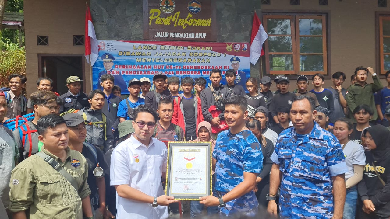Pemberian Piagam Penghargaan Museum Rekor-Dunia Indonesia dari Ketua MURI tersebut, diberikan oleh perwakilan MURI, Bryan Razu Ramadhan selaku Customer Relation Manager, dengan menyampaikan, “Pengibaran Bendera Merah Putih terbanyak di Puncak Gunung dianugerahkan kepada Pangkalan TNI Angkatan Udara Sugiri Sukani (Lanud SKI) Koopsud I dan dicatatkan sebagai rekor dunia”.