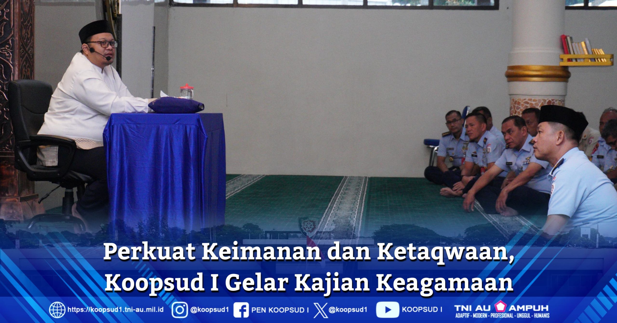 Jakarta, Penkoopsud I. Komando Operasi Udara I menggelar kegiatan keagamaan dalam bentuk Kajian Tafsir Qur’an khususnya terkait makna dari tahun baru islam yang dijelaskan oleh Ustadz Suherman, M.A., bertempat di Masjid Darussalam Makoopsud I. (Kamis, 10-7-2025).