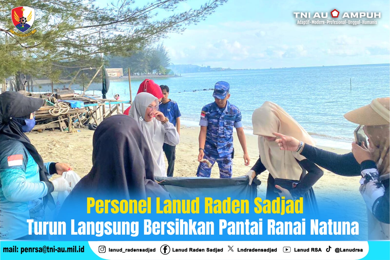 Komandan Lanud Raden Sadjad, Marsekal Pertama TNI Onesmus Gede Rai Aryadi, S.E., M.M., M.Han., memberikan dukungan penuh terhadap kegiatan bersama tersebut sebagai bentuk kepedulian menjaga kebersihan wilayah pesisir Natuna.
