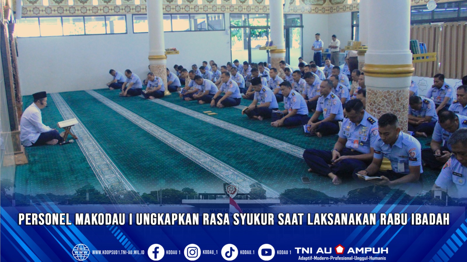 Jakarta, Penkodau I. Personel Makodau I mengangkapkan rada bersyukur kepada Allah SWT dengan membacakan surah Ar Rahman yang dipimpin Ps. Kasibintalid Bintalid Kodau I Kapten Sus Joni Chandra, M.Pd. saat melaksanakan Rabu Ibadah di masjid Darrusalam Makodau I. Rabu (4-2-2026).