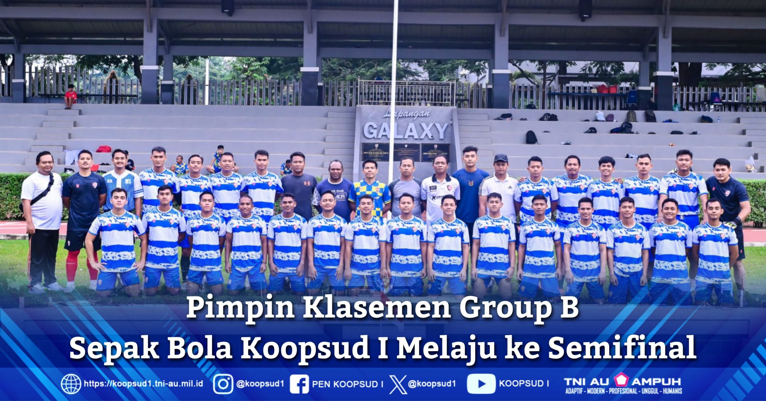 Jakarta. Penkoopsud I. Dalam rangka Pekan Olahraga Angkatan Udara (PORAU) Tim sepak bola Koops Udara I berhasil mengalahkan tim sepakbola Koopsud III dengan skor 1-0, mengalahkan tim sepakbola Koopsudnas dengan skor 2-0 dan mengalahkan tim sepak bola Seskoau dengan skor 3-0, bertempat di Lapangan Sepakbola Koopsudnas Halim Perdanakusuma Jakarta, Minggu (6/6/25).