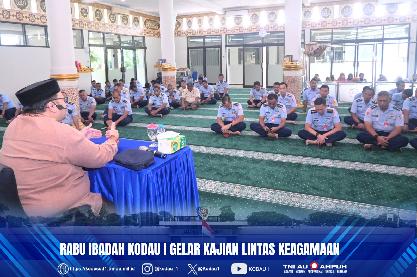 Jakarta, Penkodau I. ‘Rabu Ibadah’ merupakan kegiatan rutin di Makodau I yang digelar setiap hari rabu untuk diisi dengan kajian lintas keagamaan. Untuk umat muslim diisi dengan kajian tafsir tentang Al-Quran surat Al-Kautsar oleh Ustadz Suherman, M.A., yang digelar di Mesjid Darussalam, Makodau I. Turut hadir para Pejabat Utama Makodau I. (Rabu, 29-10-2025).