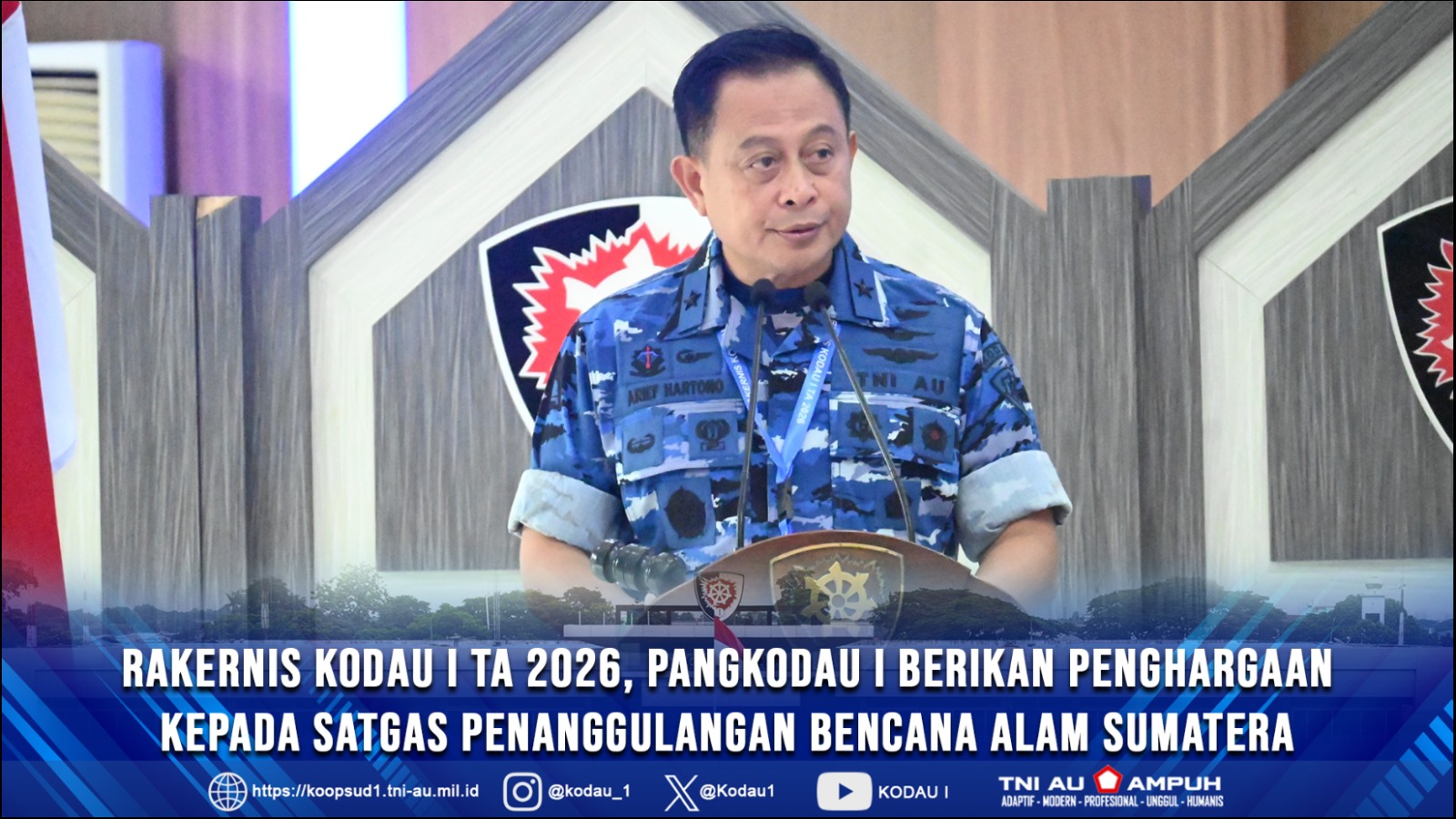 Dalam Rakernis tersebut Pangkodau I yang diwakili Kaskodau I turut memberikan penghargaan kepada Danlanud Halim Perdanakusuma, Danlanud Sultan Iskandar Muda, Danlanud Soewondo serta Danlanud Sutan Sjahrir beserta seluruh seluruh anggotanya, maupun personel jajaran Kodau I lainnya, atas segala bentuk dedikasi, perjuangan serta pengorbanannya yang tulus dan ikhlas dalam misi penanggulangan bencana alam di wilayah Aceh, Sumatera Utara dan Sumatera Barat serta di wilayah Jakarta, khususnya Lanud Halim Perdanakusuma selaku posko utama TNI dalam misi penanggulangan bencana tersebut.