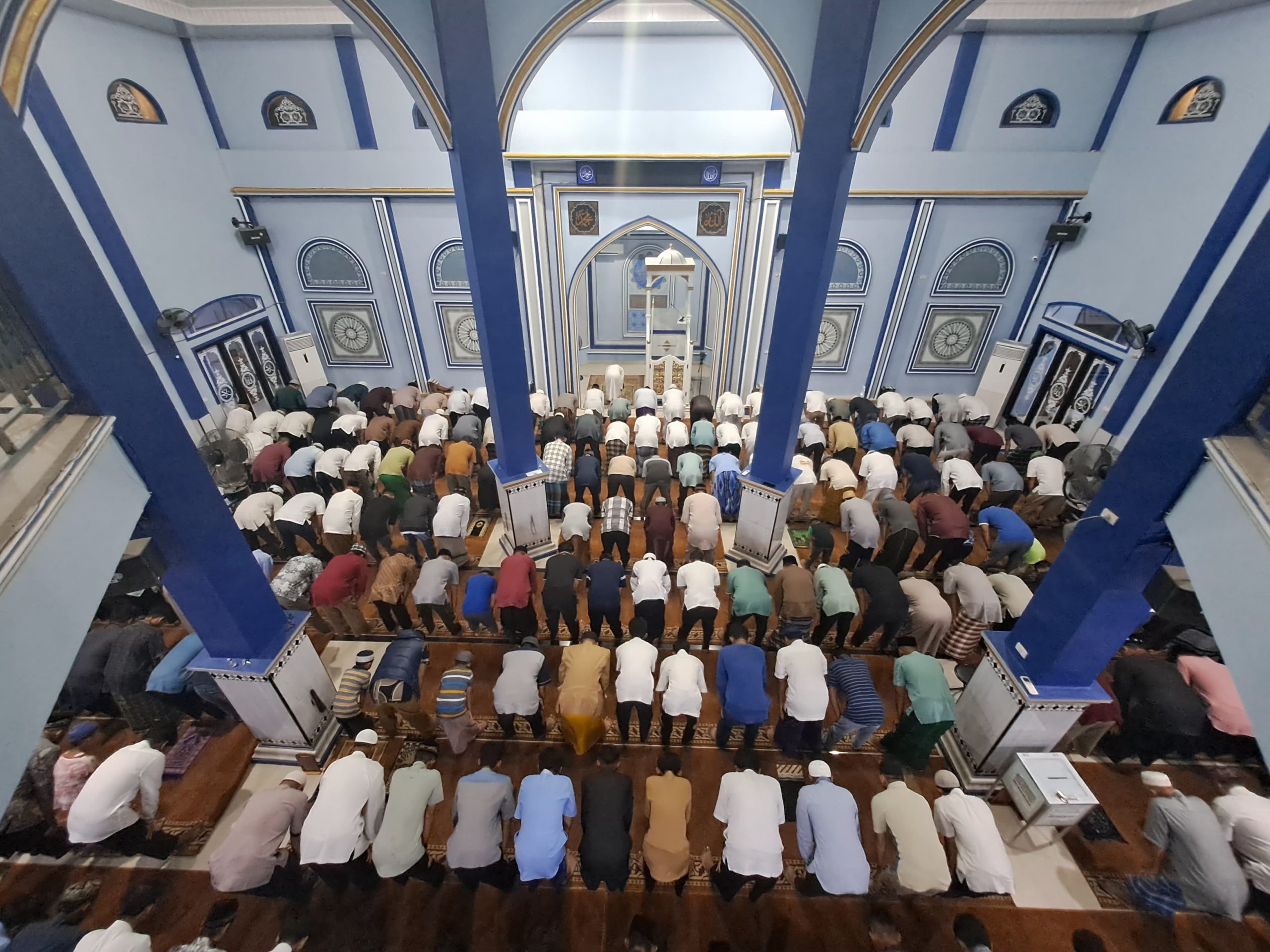 BELITUNG. Ratusan Jamaah Sholat Tarawih Penuhi Masjid Al-Ikhwah Komplek Garuda Lanud H.AS Hanandjoeddin berkapasitas 700 Jamaah tersebut bertempat di Jl Gaparman Tanjungpandan Belitung, Selasa (12/3/2024), Malam.