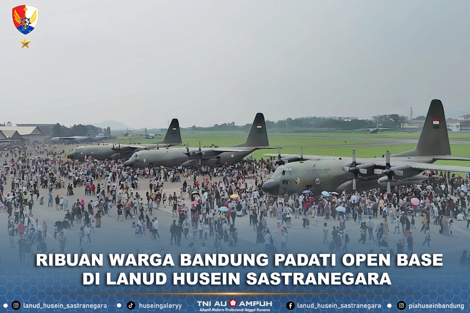 Bandung – Ribuan warga Kota Bandung dan sekitarnya memadati area Lanud Husein Sastranegara dalam acara Open Base yang digelar dalam rangka memperingati Hari Ulang Tahun (HUT) ke-80 Tentara Nasional Indonesia (TNI), Minggu (5/10).