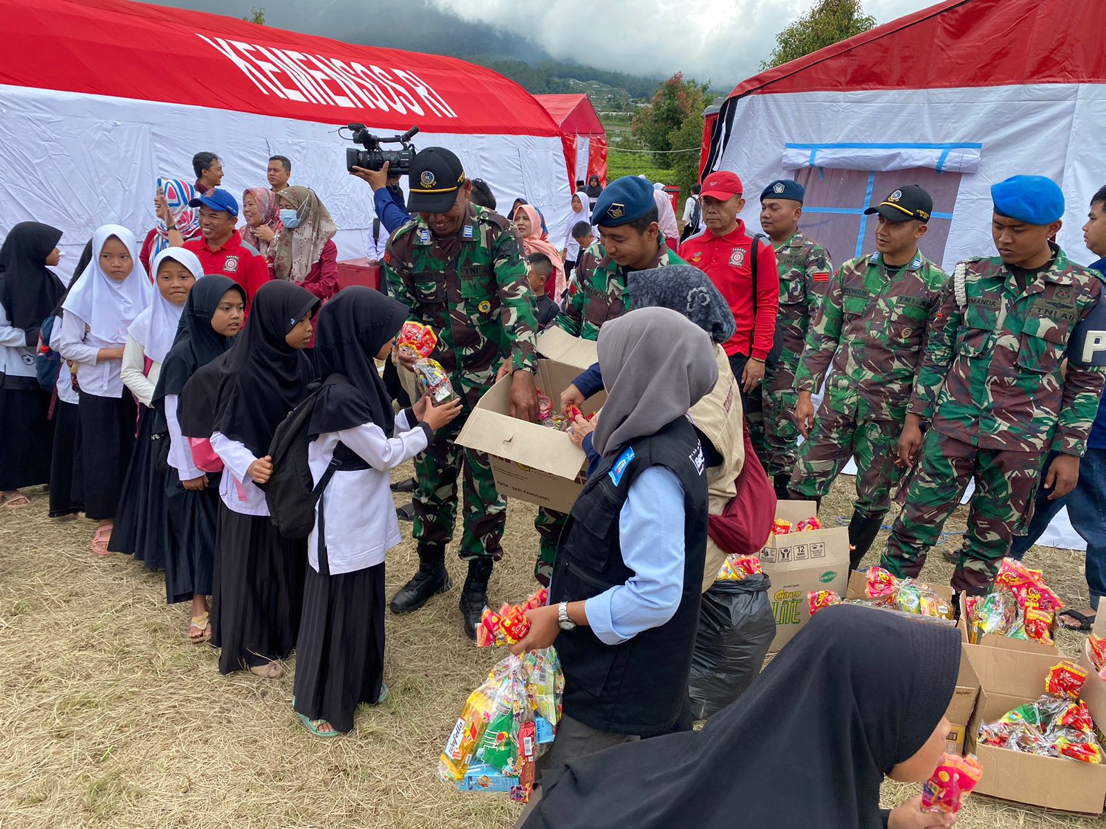 Satgasduk dari Lanud Ats yang berada di Desa Ciputri dibawa pimpinan Komandan Posko (Danposko)Mayor Tek Endang terus memberikan bantuan kepada pengungsi yang berada di lokasi tenda darurat.