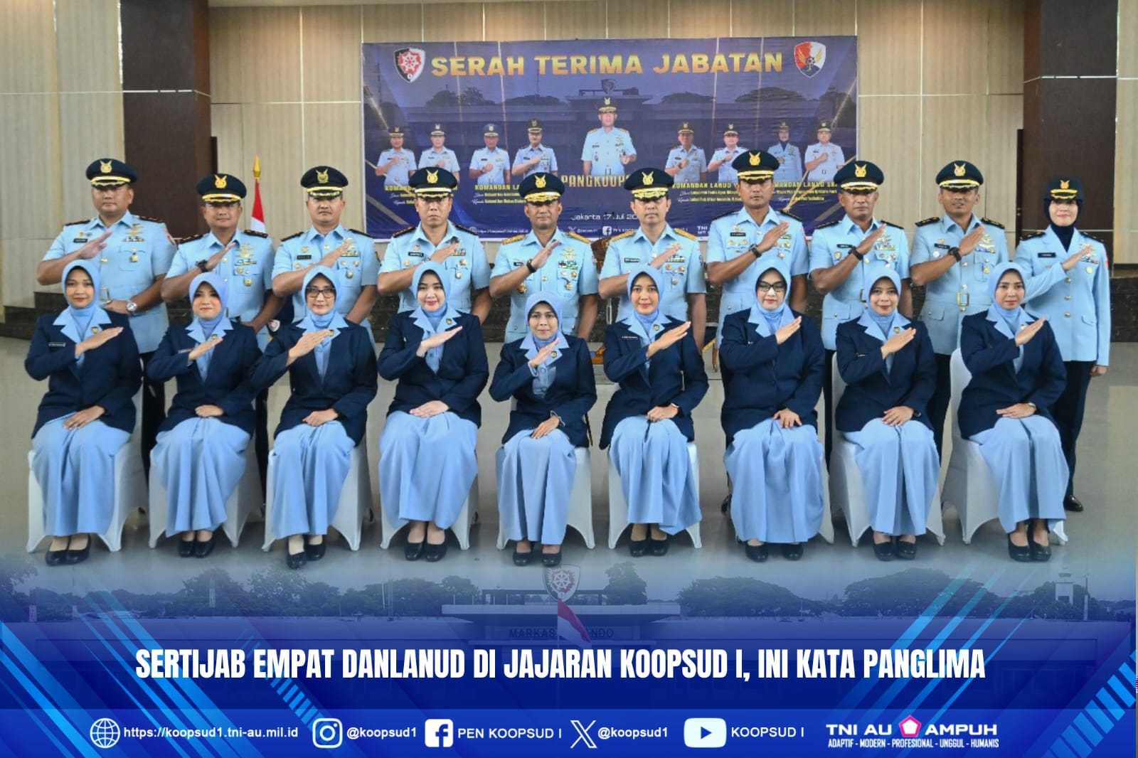 Panglima Koops Udara I Marsda TNI Muzafar, S.Sos., M.M. pada acara tamah mengatakan, sebagai seorang Komandan harus mampu memberikan keteladanan dan pengawasan melekat kepada bawahanya, terutama dalam menggunakan medsos, tujuanya adalah untuk menghindari dari prilaku-prilaku negatif yang dapat merugikan diri sendiri, keluarga dan institusi itu sendiri.