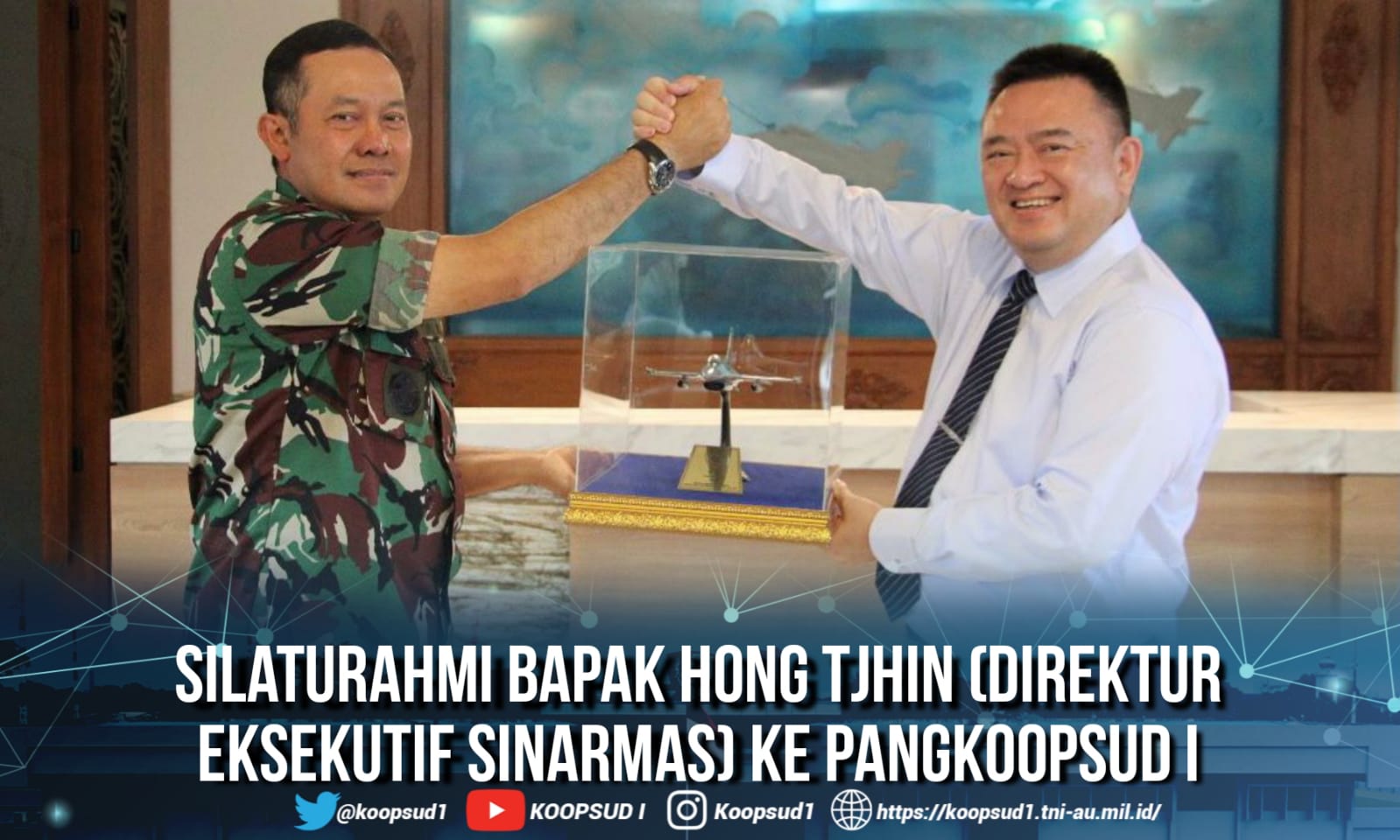 Pada kunjungan tersebut, Pangkoopsud I menyampaikan ucapan “Terimakasih atas partisipasi Sinarmas dan Tzu Chi pada kegiatan Bakti Sosial (Baksos) Koopsud I tahum 2022 dalam rangka membantu masyarakat kurang mampu diwilayah Koopsud I dan juga memberikan Piagam Penghargaan serta penyerahan Cindera Mata miniatur Pesawat F-16”.