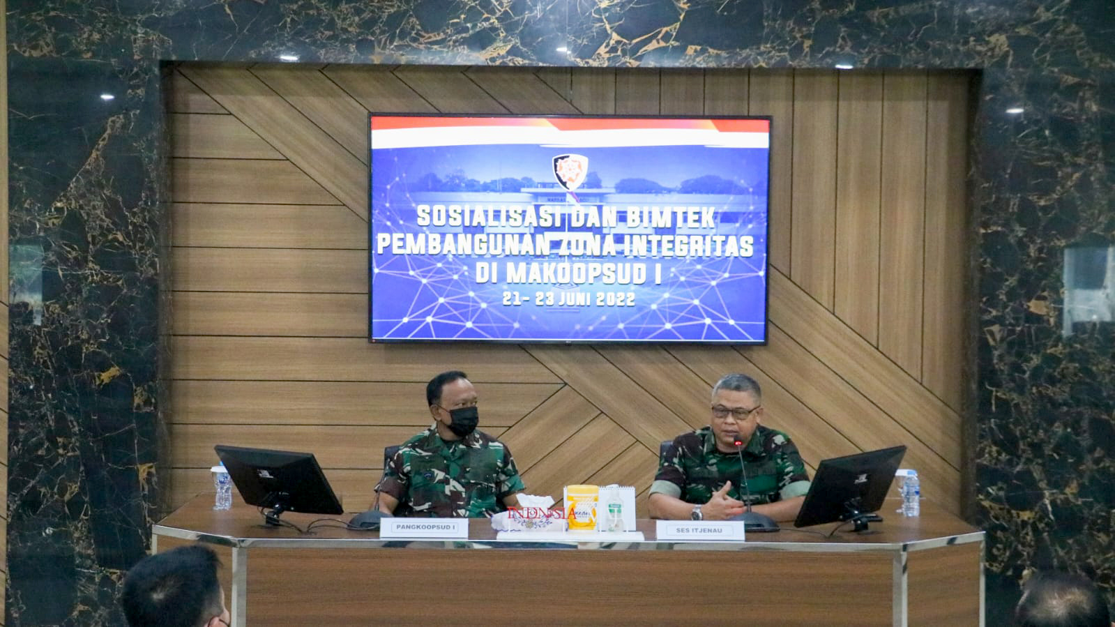 Jakarta, Penkoopsud I. Pangkoopsud I Marsda TNI Ir. Tedi Rizalihadi S., M.M. membuka kegiatan sosialisasi dan bimbingan teknis pembangunan zona integritas di wilayah Makoopsud I yang didampingi oleh Sekretaris Itjenau Marsma TNI Ir. Nurcahyo Aloysius bersama dengan tim dari Itjenau. Bertempat di Ruang Yudha Makoopsud I. (Selasa, 21-06-2022).