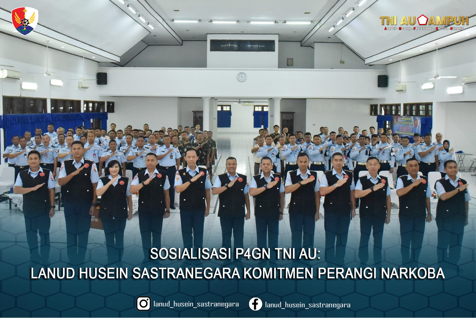 “Lanud Husein Sastranegara berkomitmen penuh dalam mendukung memerangi narkoba, baik di lingkungan internal maupun di masyarakat luas. Kegiatan sosialisasi ini adalah bagian dari upaya kami untuk mendukung program pemerintah dalam memberantas narkoba”, disampaikan Komandan Lanud Husein Sastranegara Kolonel Pnb Alfian. S.E. dalam sambutannya saat membuka acara sosialisasi anti narkoba dari Tim Satgas P4GN Mabesau Jakarta, bertempat di Gedung Graha Antariksa Lanud Husein Sastranegara, Kamis (18/7/2024).