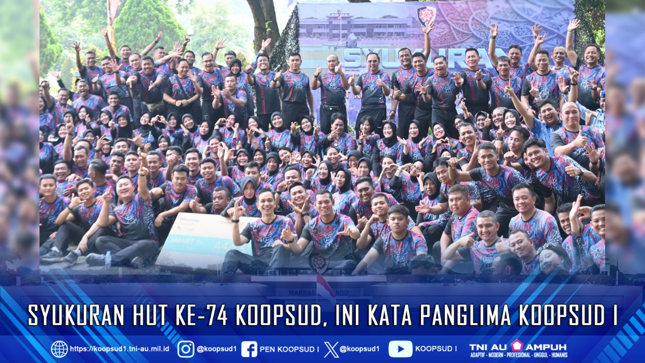Kemudian dalam sambutannya, Panglima Koopsud I menjelaskan, dari tahun ketahun Alhamdulillah Koopsud I mengalami perubahan signifikan, baik itu berkaitan dengan pembangunan, maupun tingkat kedisiplinan dan kebersihan serta inovasi personel itu sendiri, ini merupakan implementasi dari nilai-nilai syukur sebagai senjata utama dalam tugas.