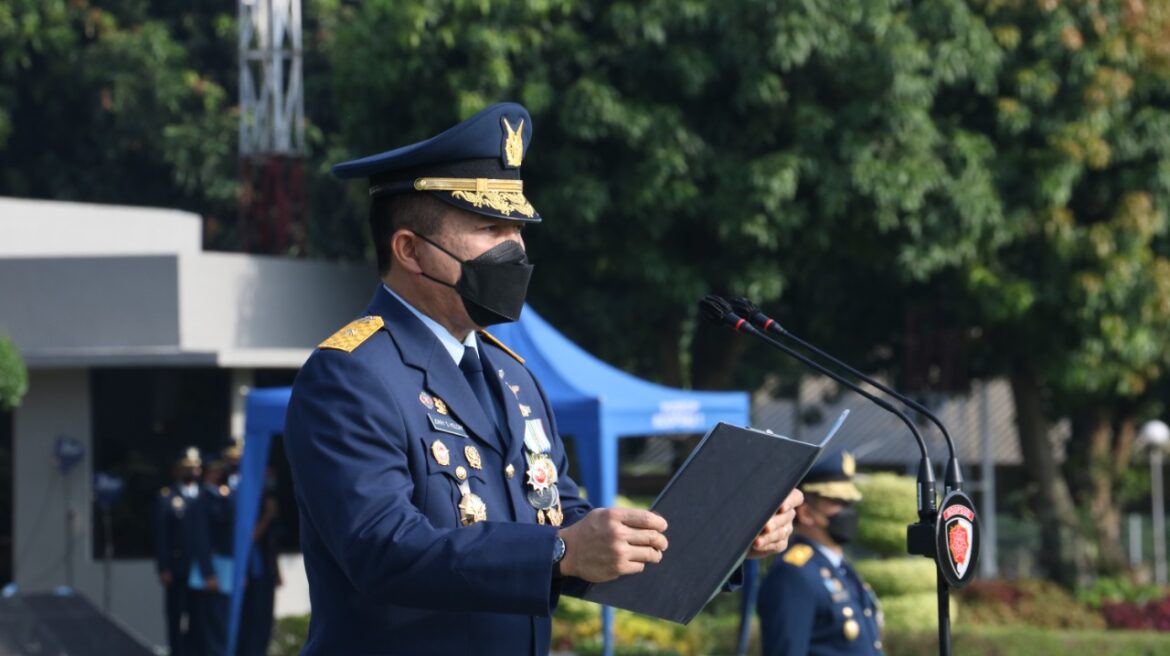 Jakarta, Penkoopsud I. Sahli Bidang SDM Koops Udara I Kolonel Kal M. Ribut HR., S.E., M.M., pimpin Upacara Bendera mingguan di Makoops Udara I. Bertempat di Lapangan Upacara Makoops Udara I. (Senin, 25-3-2024).