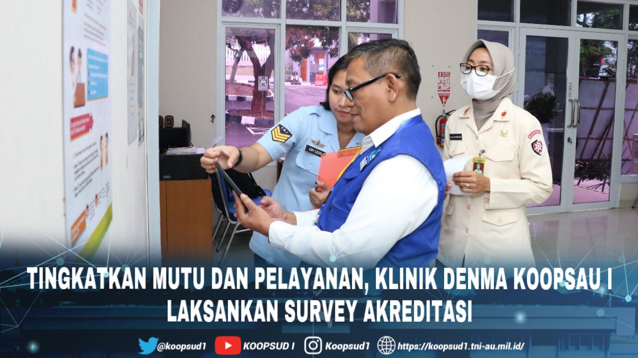 Jakarta, Penkoopsud I. Dalam rangka meningkatkan mutu dan pelayanan Klinik Pratama Satkes Denma Koopsau I laksanakan survey akreditasi, dengan menghadirkan Tim Surveyor dari Lafkespri, Lembaga Akreditasi Fasilitas Kesehatan Primer yang dipimpin oleh Didin Aliyudin, SKM., M.Kes., M.Si., dan drg. Ira Damayanti, MHA. Bertempat di Klinik Satkes Denma Koopsau I. (Kamis, 30-11-2023).