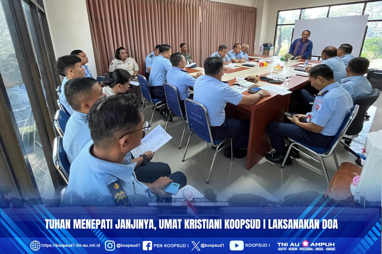 Jakarta, Penkoopsud I. Umat Kristiani Makoopsud I melaksanakan doa di hari Rabu Ibadah yang dipimpin oleh PNS Betieli Waoma, S.Th. yang sehari-hari sebagai Kasibintal Dispers Denma Koopsudnas, bertempat di ruang rapat Denma Koopsud I. Rabu (13/8/2025).
