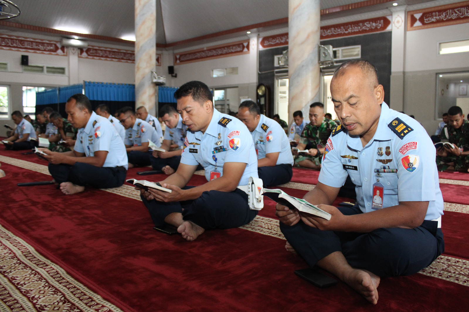 Bandung — Dalam rangka menutup rangkaian kegiatan akhir tahun, Pangkalan TNI Angkatan Udara (Lanud) Husein Sastranegara menggelar doa bersama dan salat Dhuha berjamaah yang berlangsung khidmat di Masjid Amrullah Lanud Husein Sastranegara, Bandung, Selasa (31/12). Kegiatan tersebut diikuti oleh seluruh personel militer dan Pegawai Negeri Sipil (PNS) Lanud Husein Sastranegara.