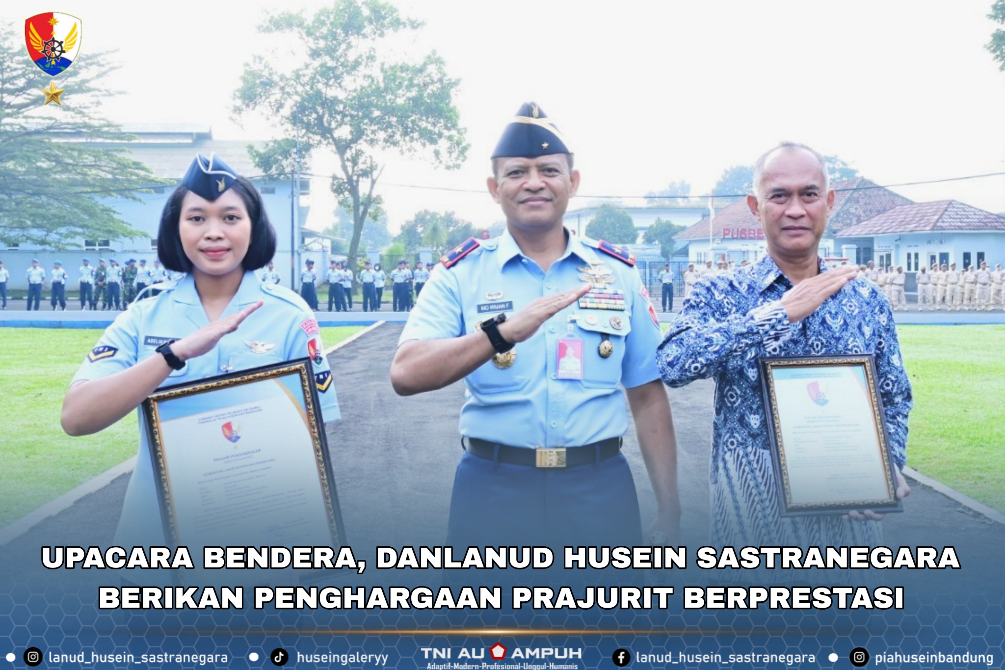 Bandung — Lanud Husein Sastranegara menggelar Upacara Bendera yang diikuti seluruh personel militer, PNS, dan PPPK di Lapangan Upacara Lanud Husein Sastranegara, Senin (22/12). Komandan Lanud Husein Sastranegara, Marsma TNI MD. Irman Fathurrahman, S.E., M.M., bertindak selaku Inspektur Upacara.