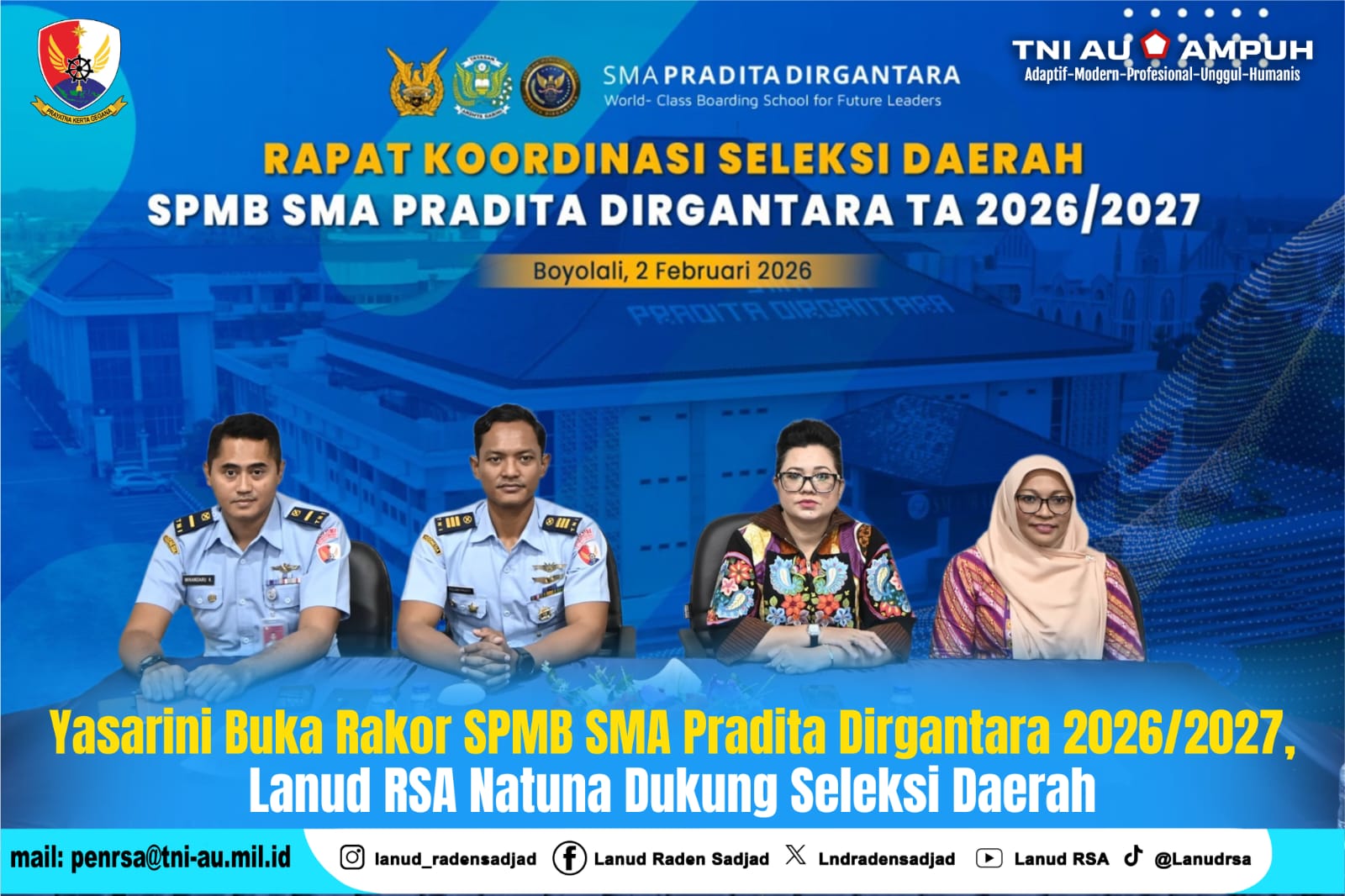 Home Berita Yasarini Buka Rakor SPMB SMA Pradita Dirgantara 2026/2027, Lanud RSA Natuna Dukung Seleksi Daerah